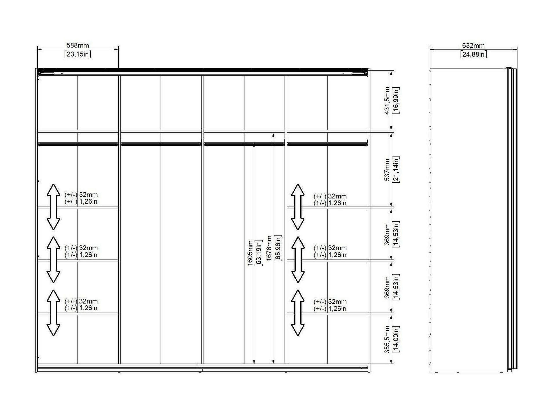 Garde-robe 2 portes Dstabil, Meubles de chambre, Penderie de plain-pied, Placard à vêtements, 243x61 h220 cm, Blanc et Noir