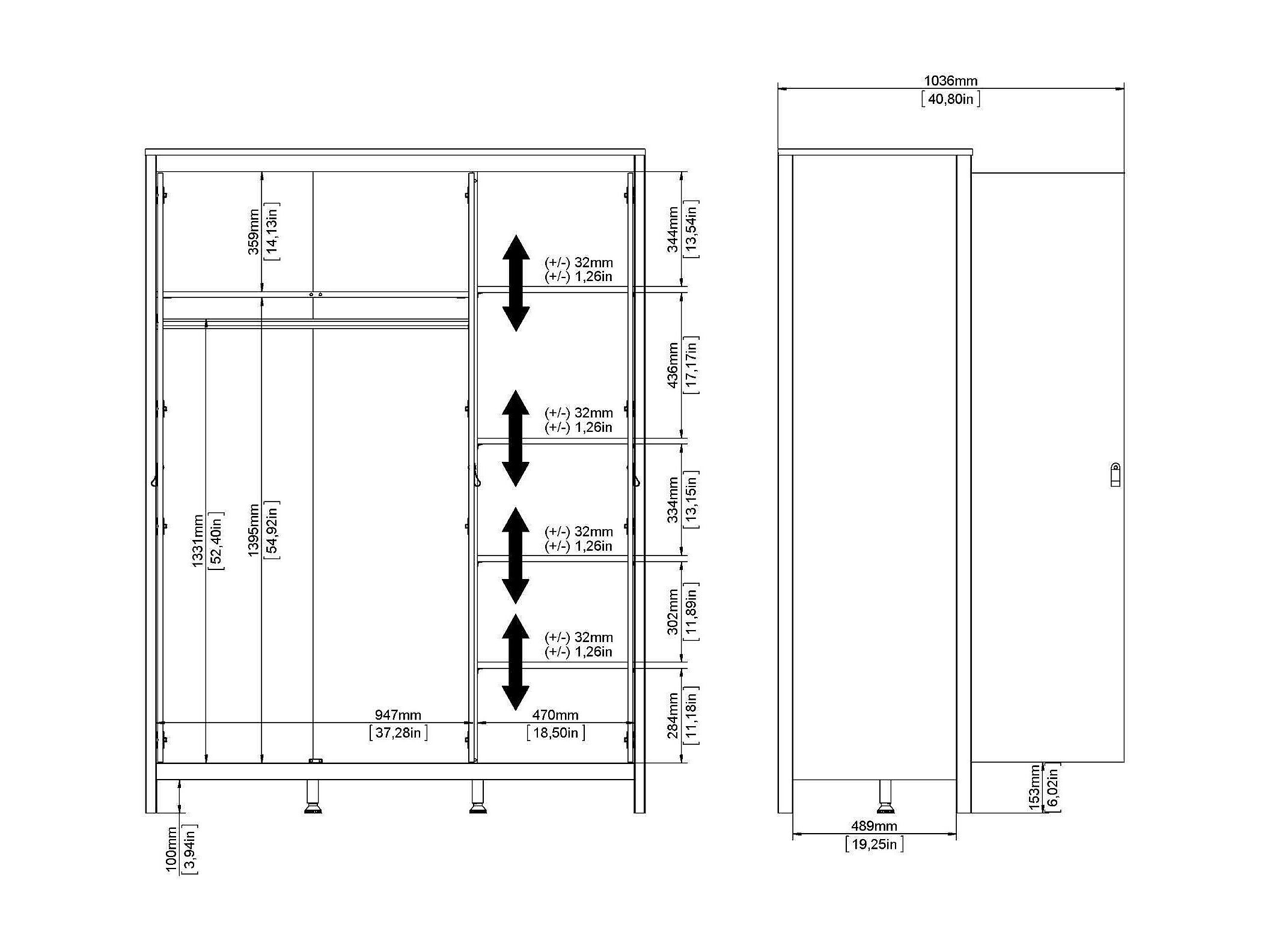 Garde-robe 3 portes Dsemiol, Meubles de chambre, Penderie de plain-pied, Placard à vêtements, 150x58 h199 cm, Noir