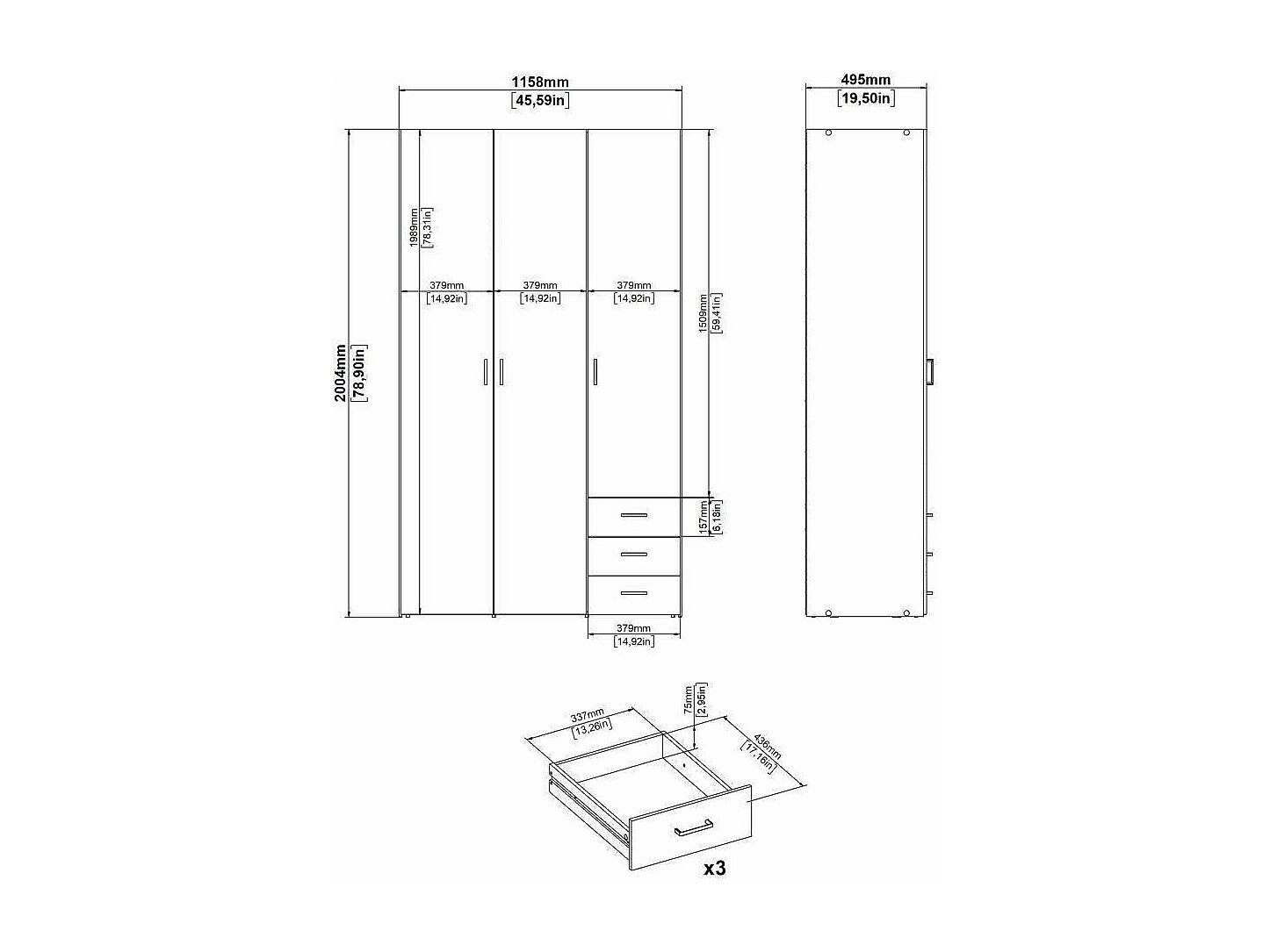 Garde-robe 3 portes Dsemplic, Meubles de chambre, Penderie de plain-pied, Placard à vêtements, 115x49 h200 cm, Blanc