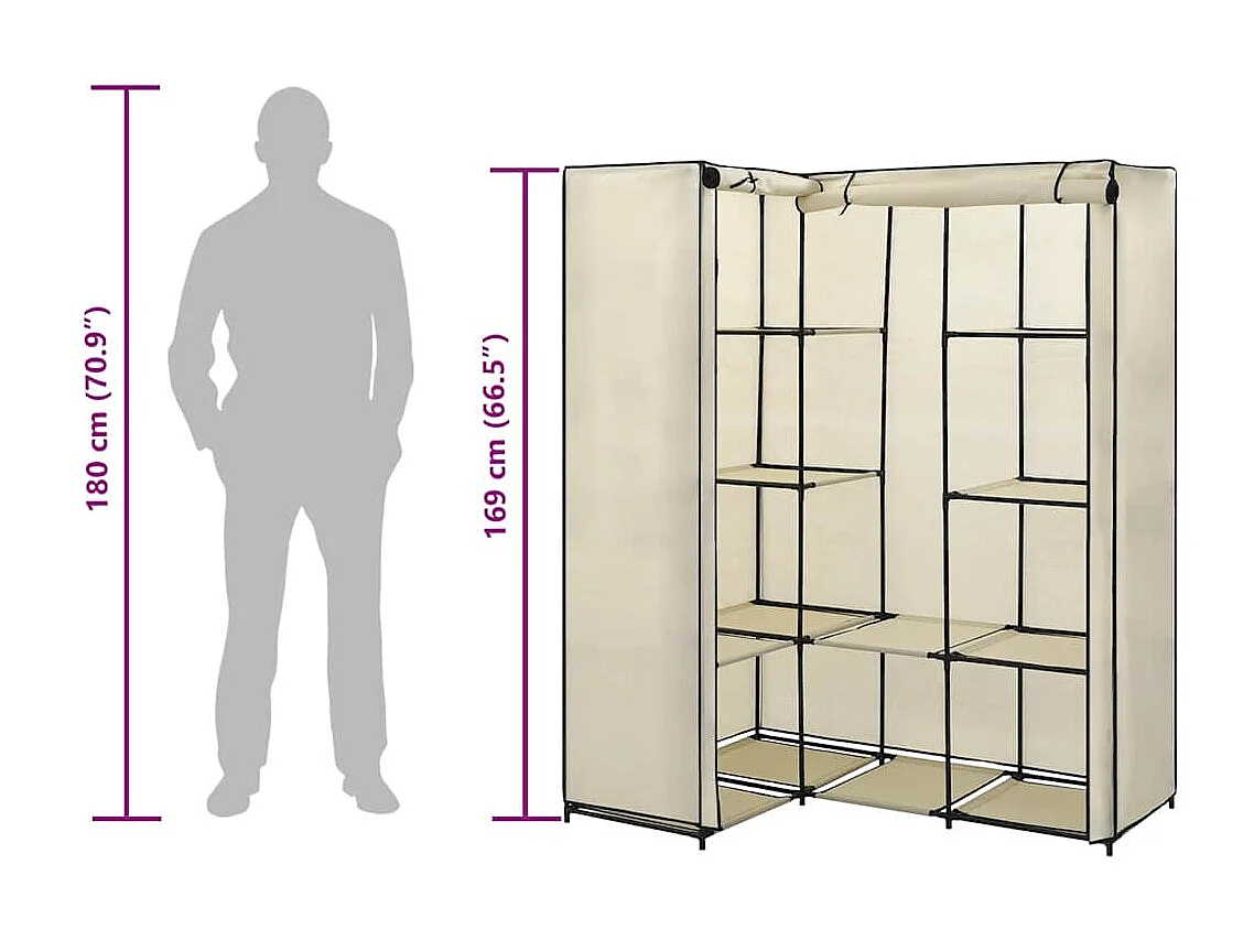 Armoire avec compartiments et barres Crème 150x45x175 cm Tissu