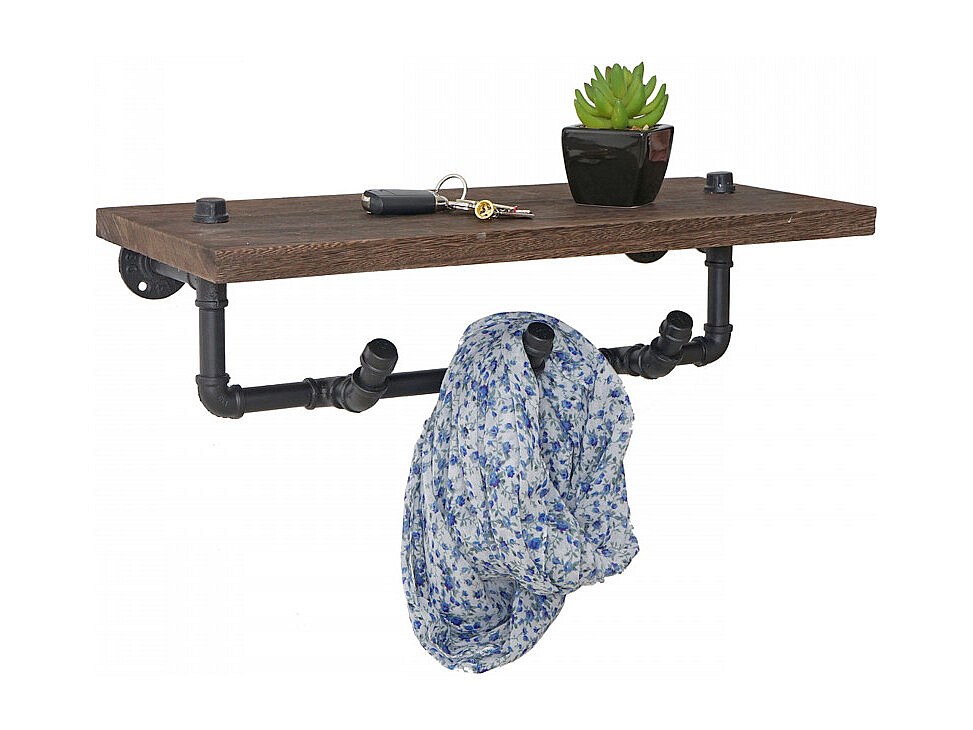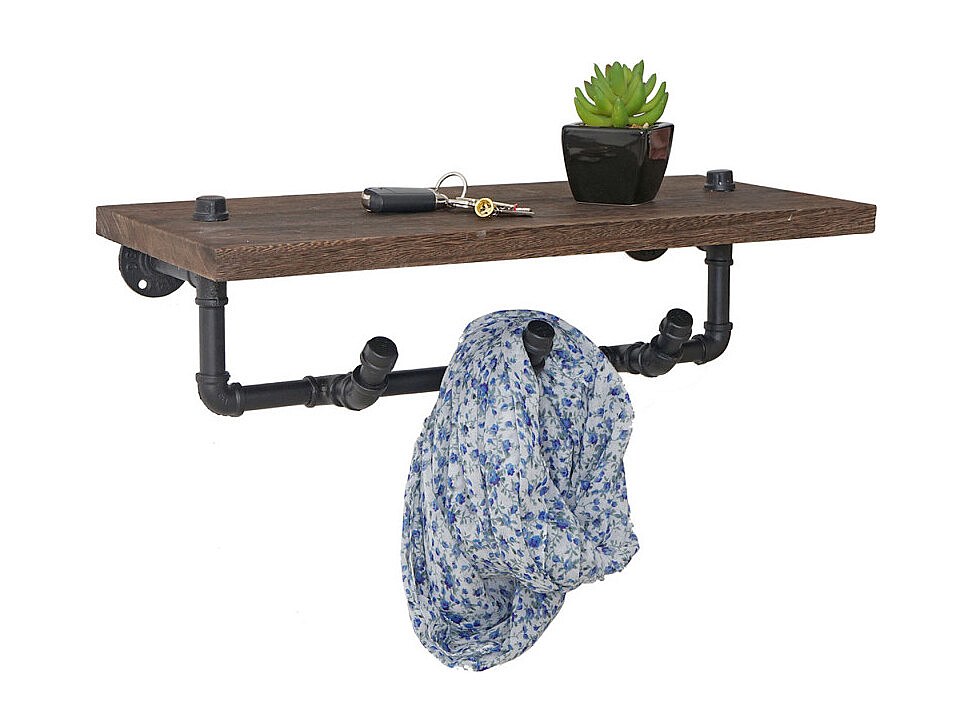 Garde-robe murale HWC-C45, étagère murale, design industriel marron