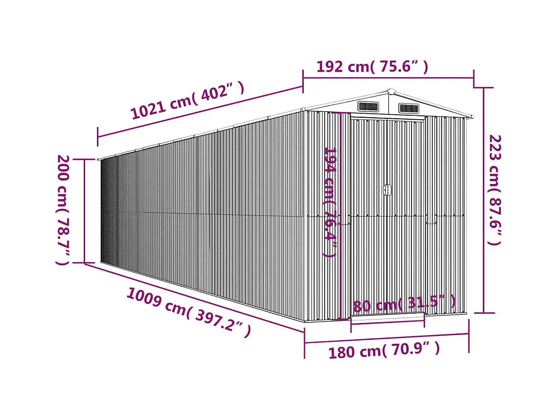 Garden Furniture - Abri de jardin Gris clair 192x1021x223 cm Acier galvanisé