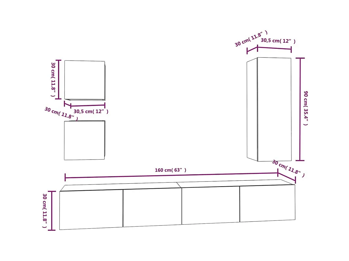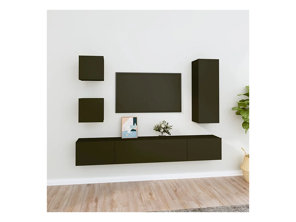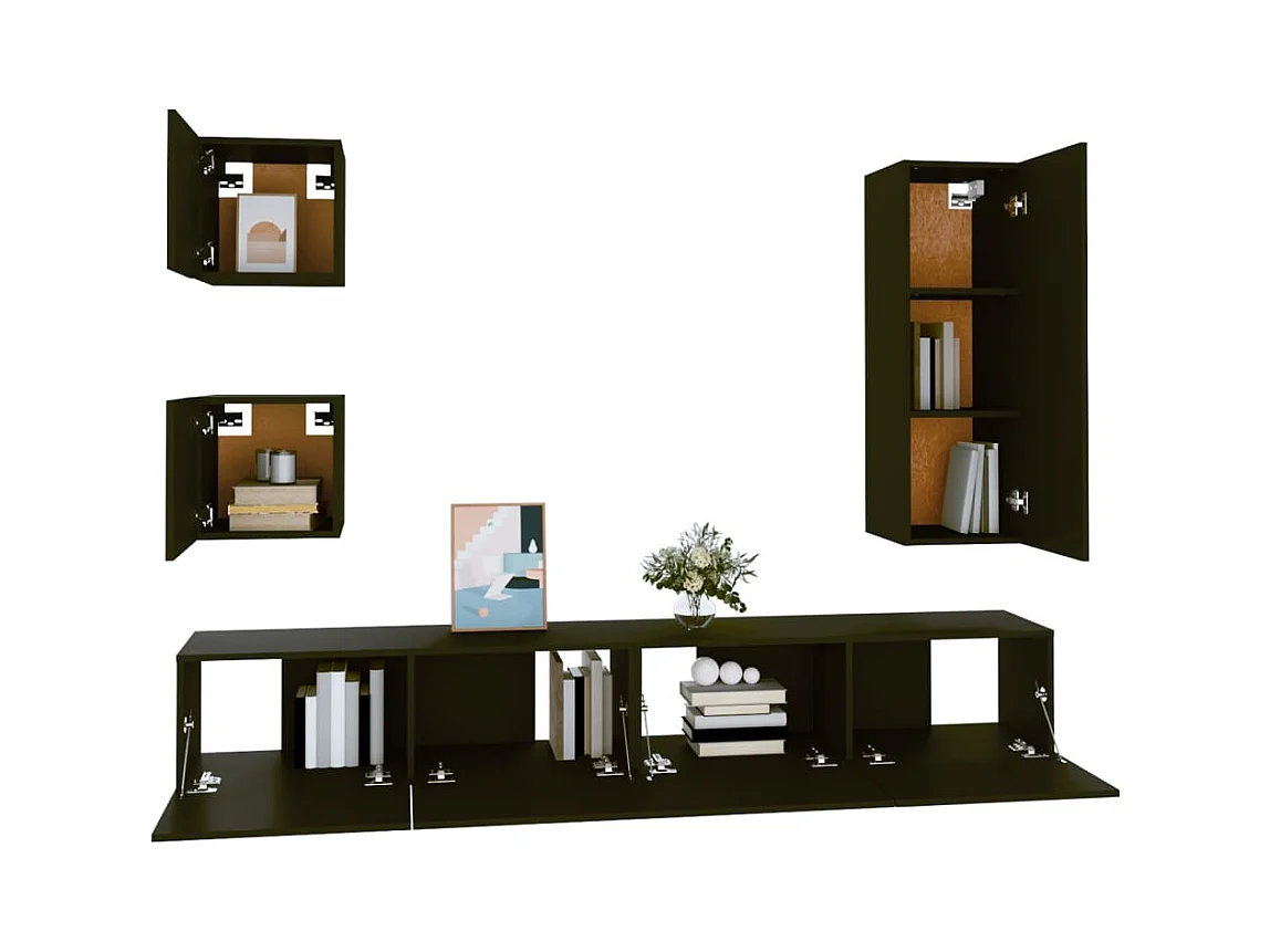 Garden Furniture - Ensemble de meubles TV 5 pcs Noir Bois d'ingénierie