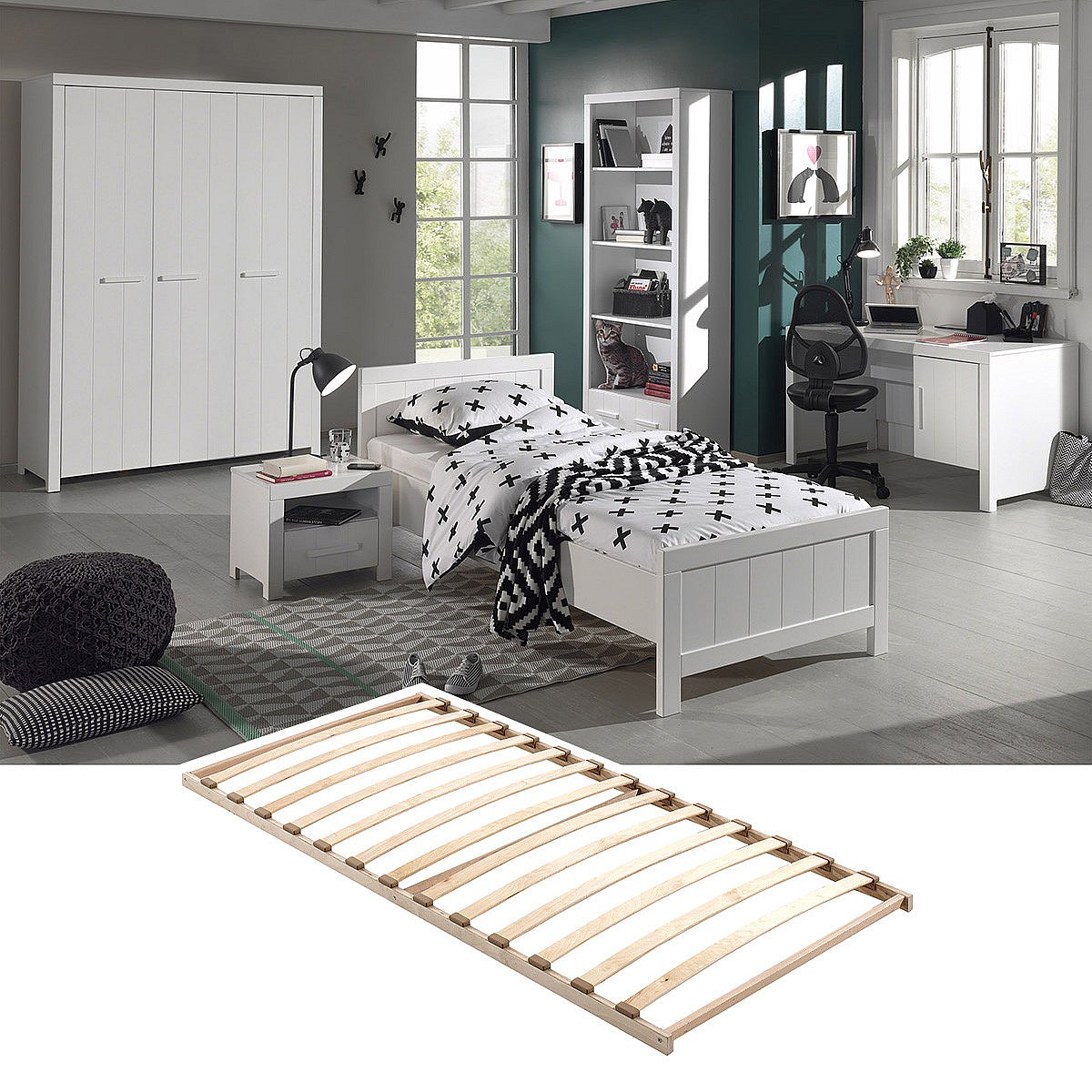GASTON - Lit 90x200cm + Sommier + Chevet + Armoire 3P + Pack Bureau