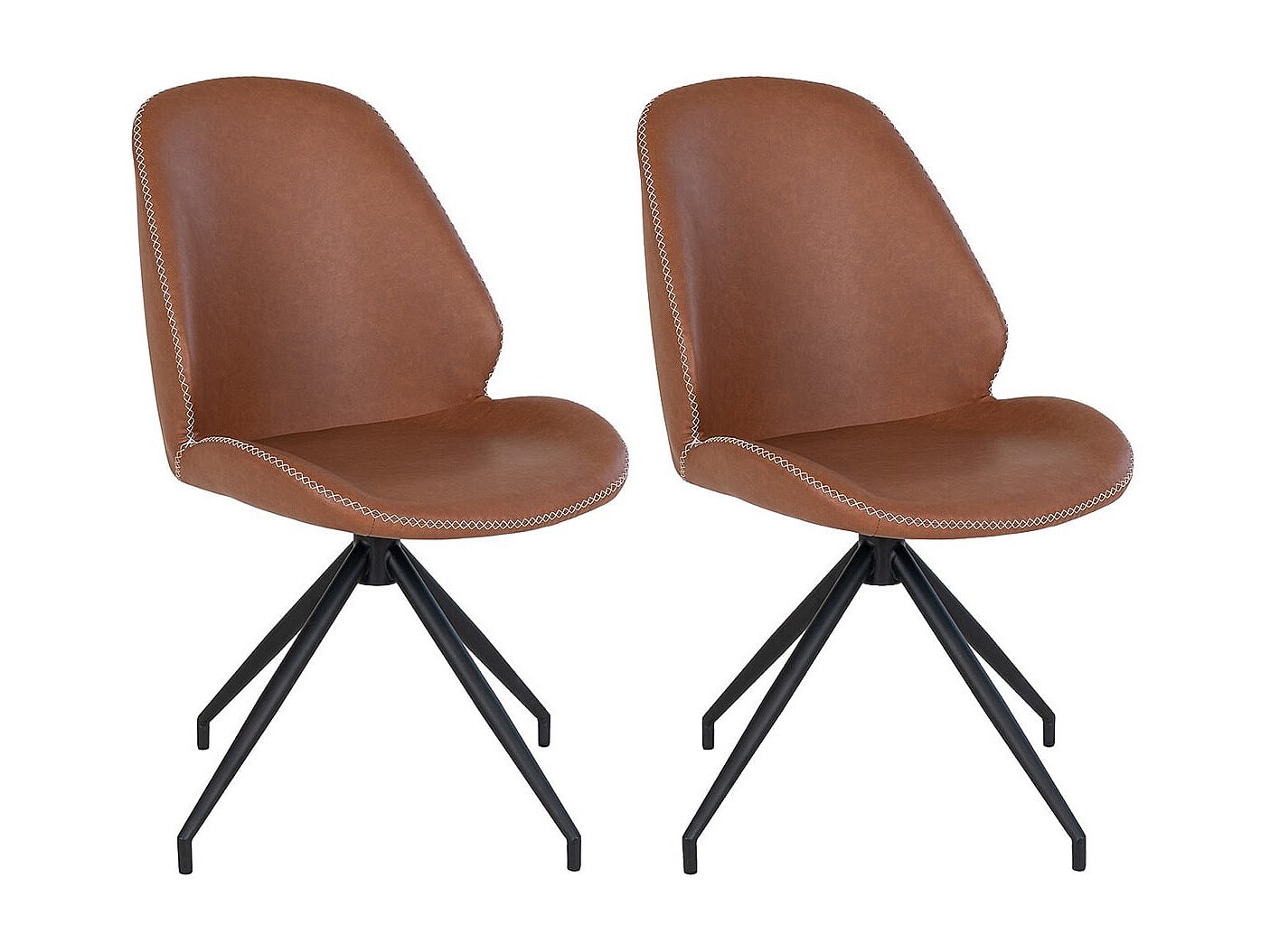 GAYA - Lot de 2 Chaises Incurvées Pivotantes Simili Marron