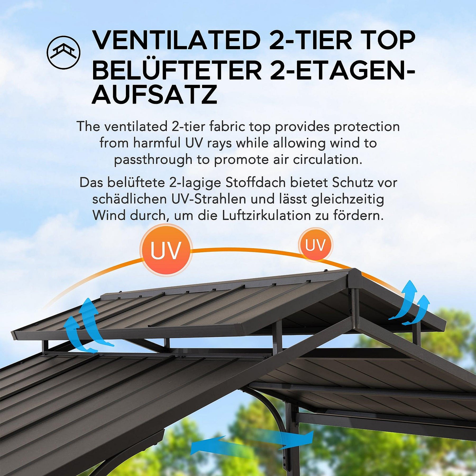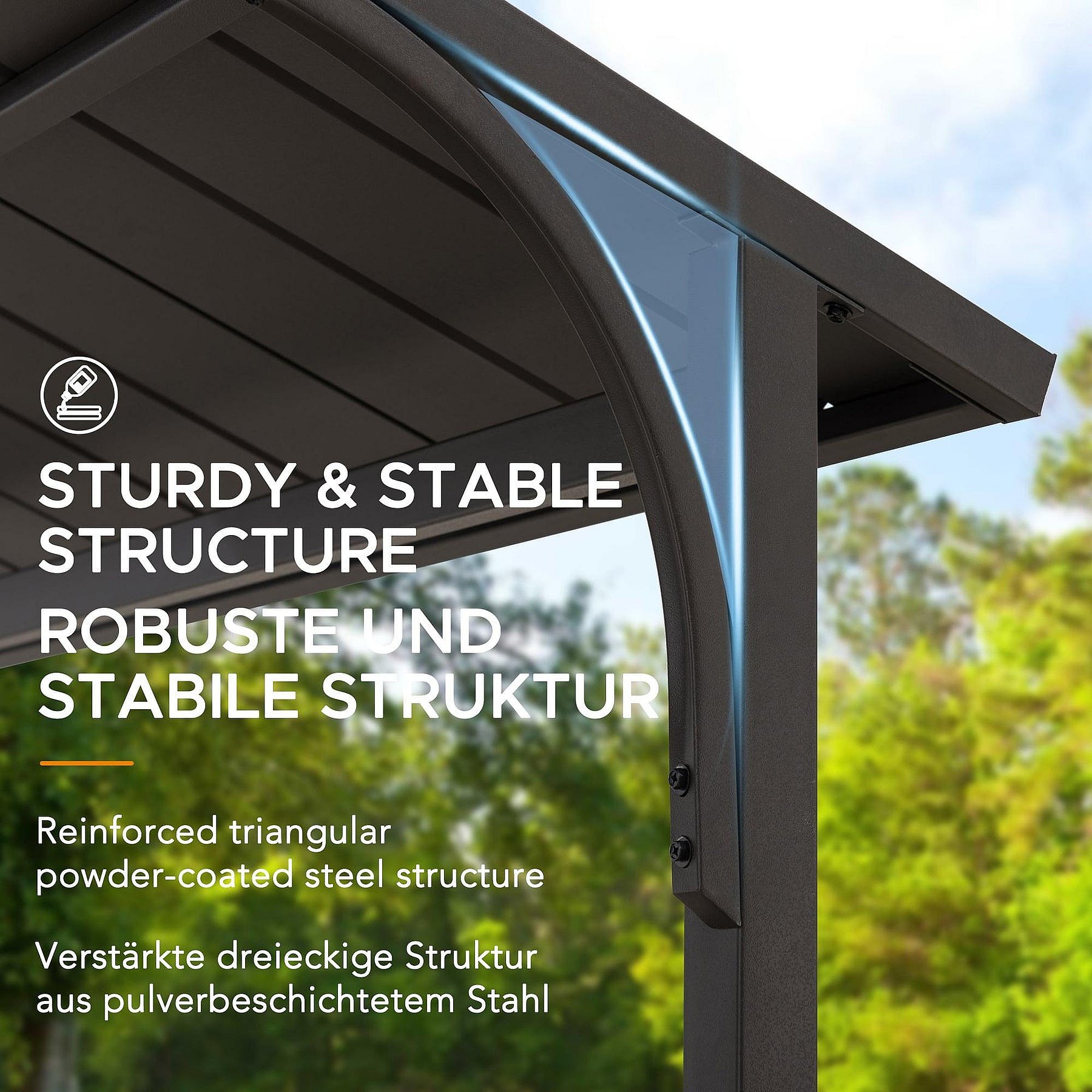 Gazebo de jardin à toit rigide avec crochet de plafond et étagères de bar ASPE 152 cm x 244 cm