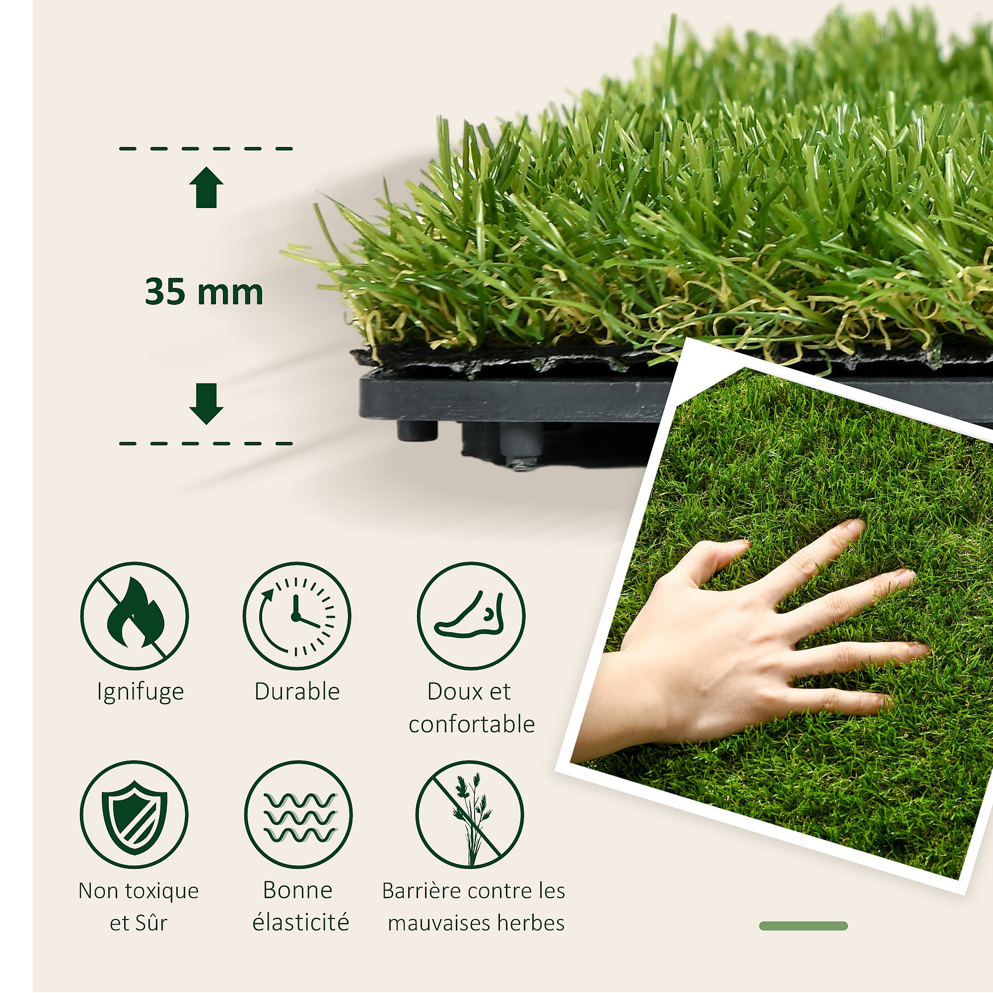 Gazon synthétique artificiel set de 10 dalles carreaux 30 x 30 cm épaisseur confort 3,5 cm à emboîter vert