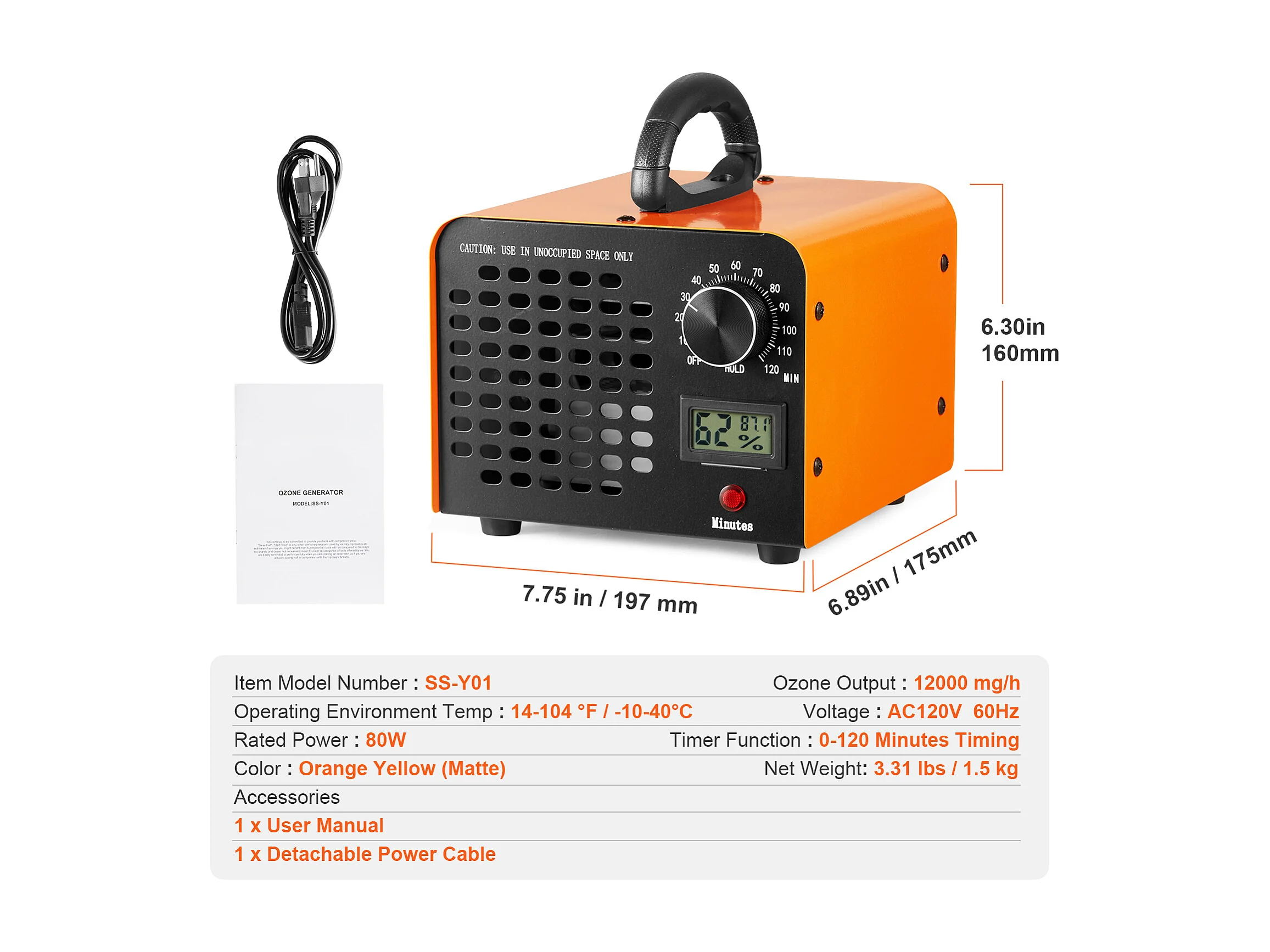 Générateur d'Ozone SucceBuy 12000 mg/h, Éliminateur d'Odeurs avec Minuterie de 0 à 120 Minutes