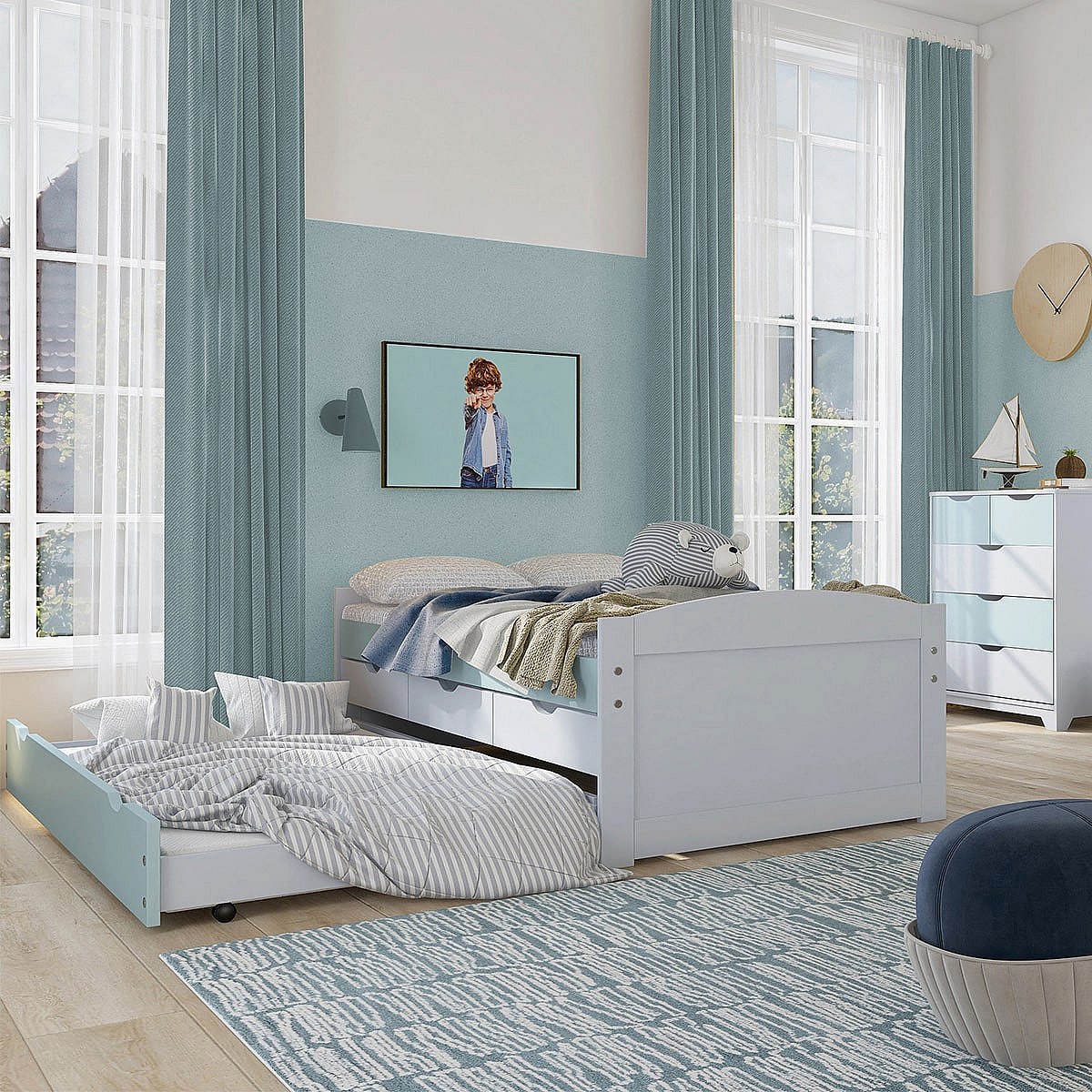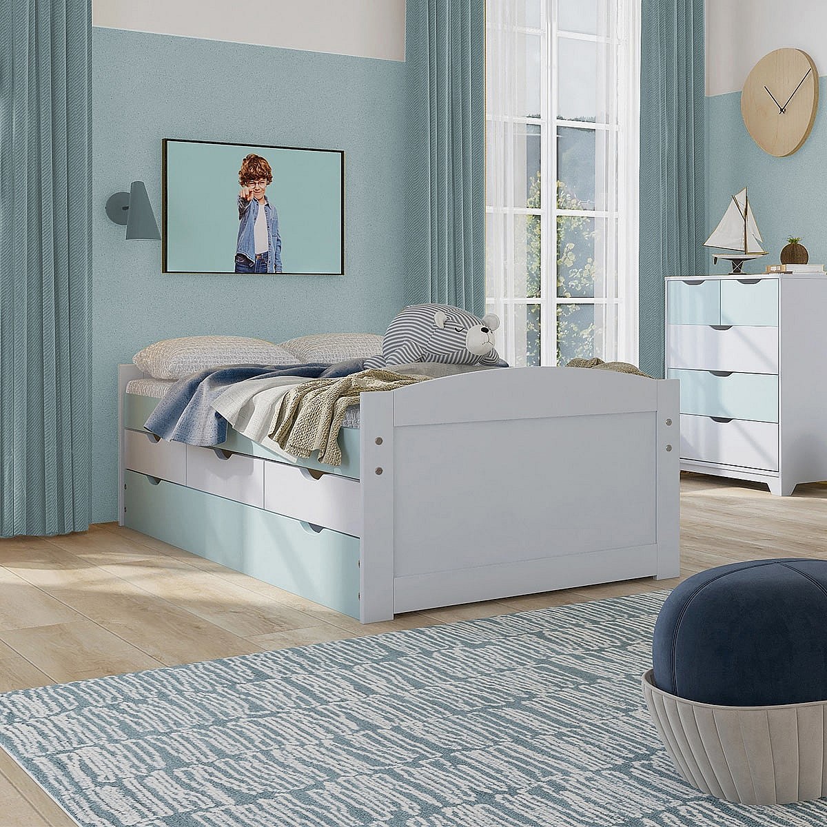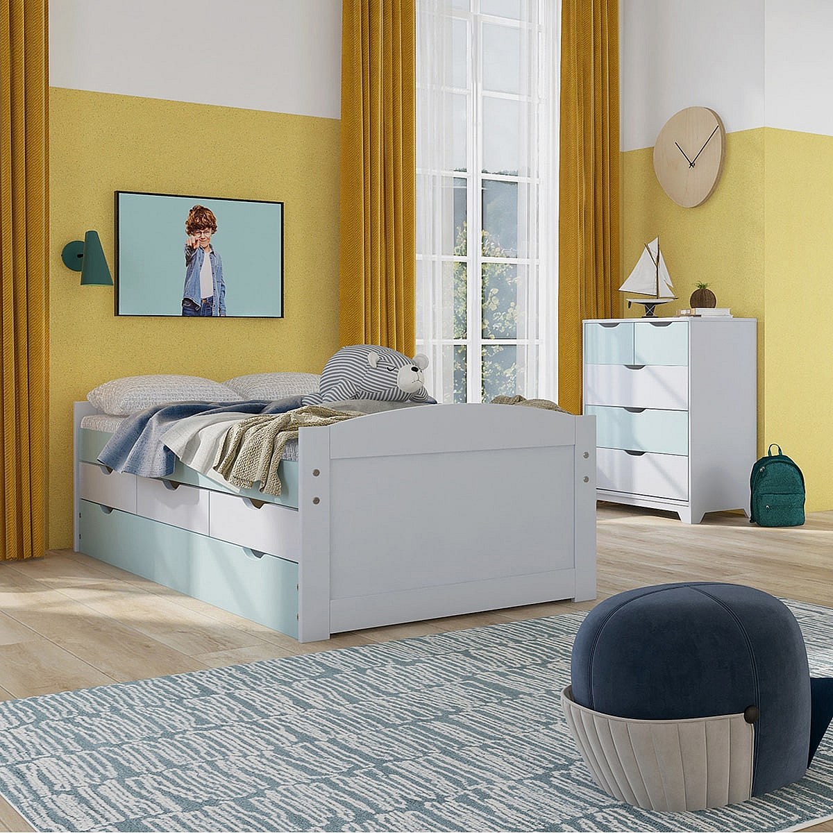 GLASCA - Ensemble Lit Gigogne 90x200cm + Commode Pin Massif