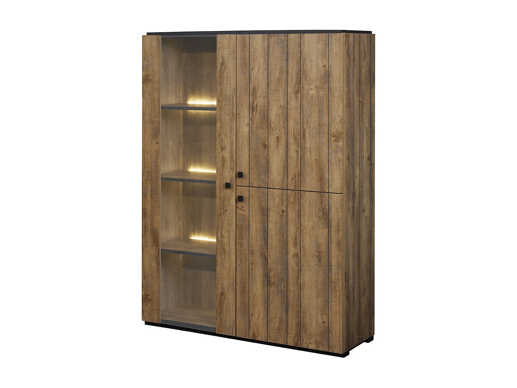 GLESS - Ensemble Séjour Complet et Table 200cm Aspect Bois Finition Denver Piètement U Métal Noir