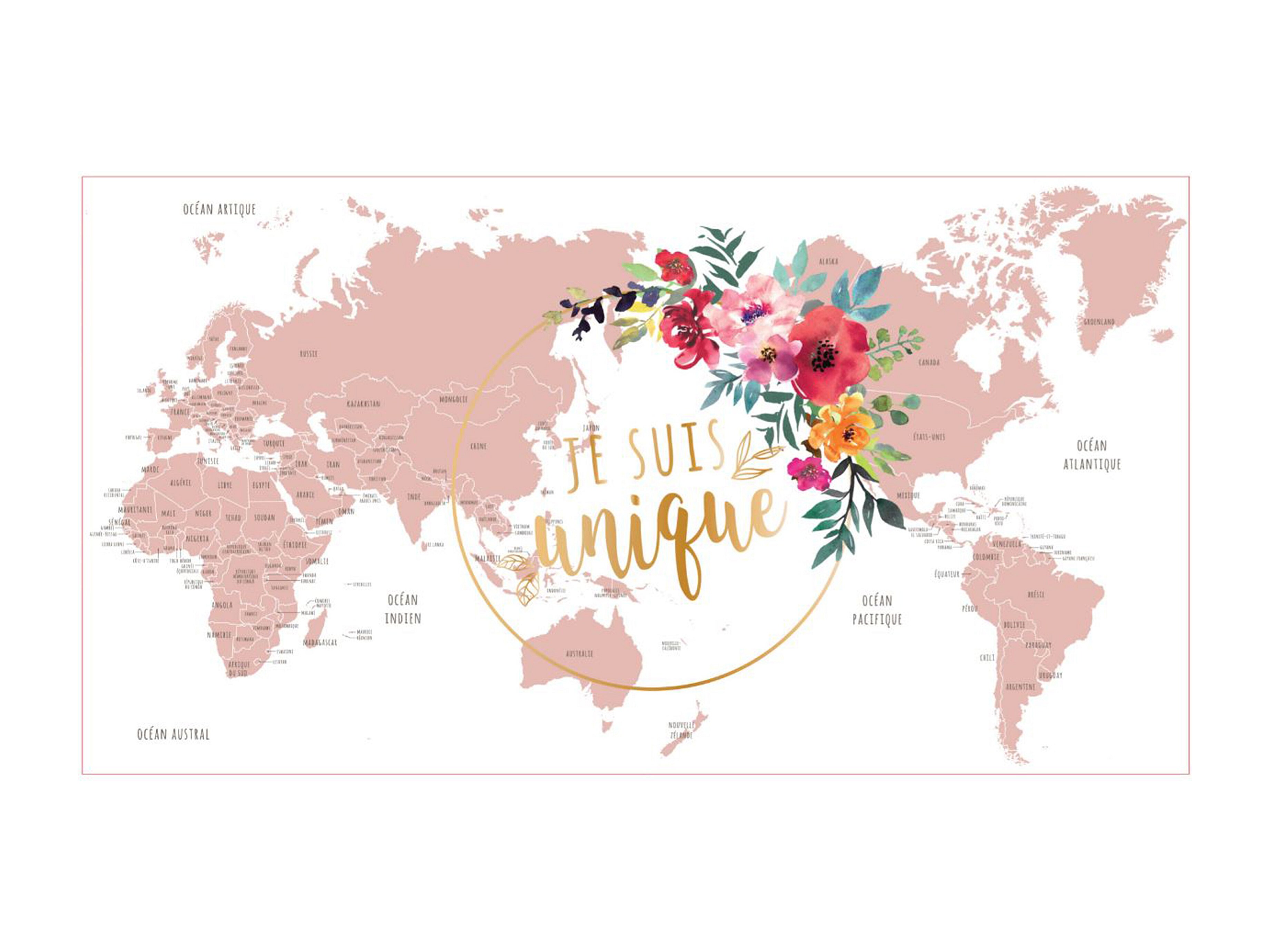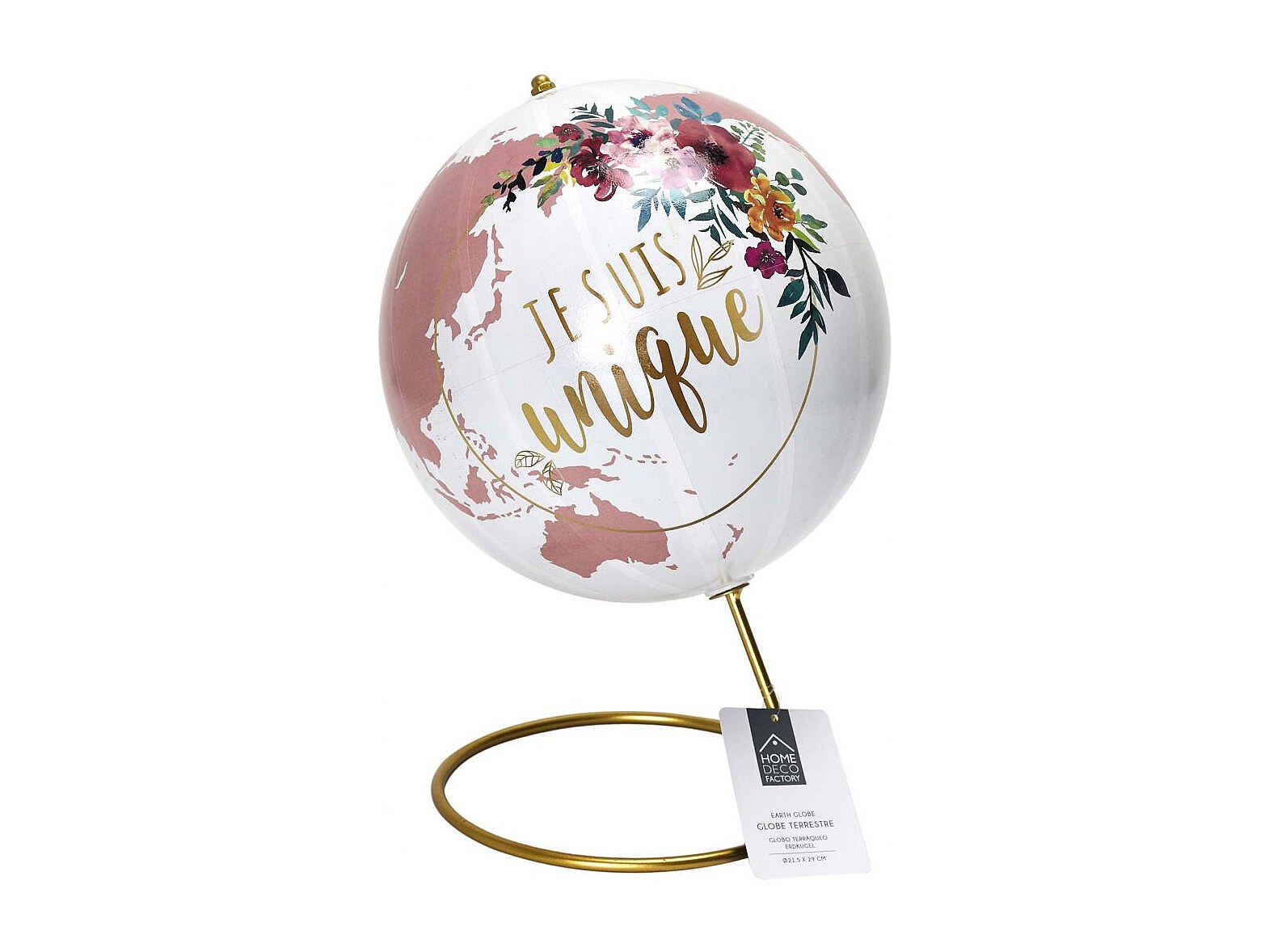 Globe Terrestre Deco Girly Blanc, Rose, Or
