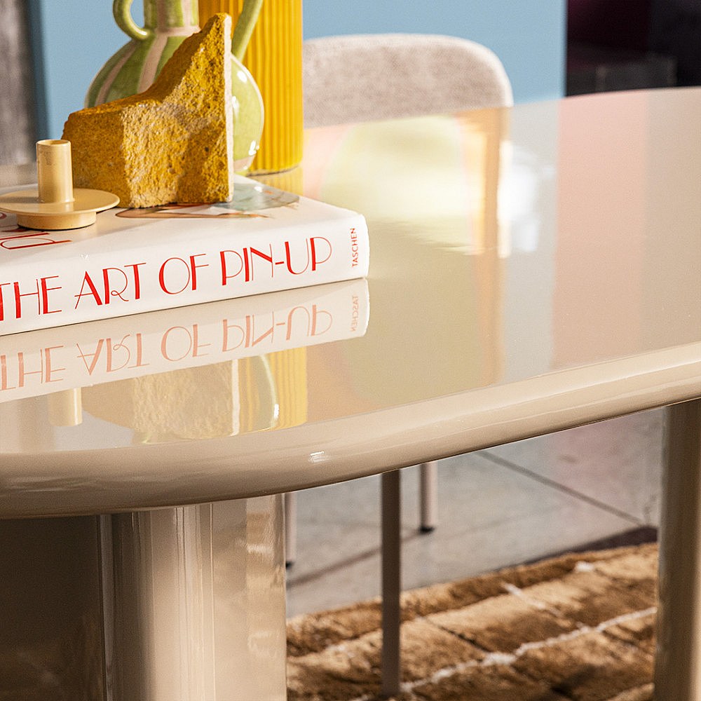 Glossi - Table à manger 6 personnes ovale en bois laqué - Beige