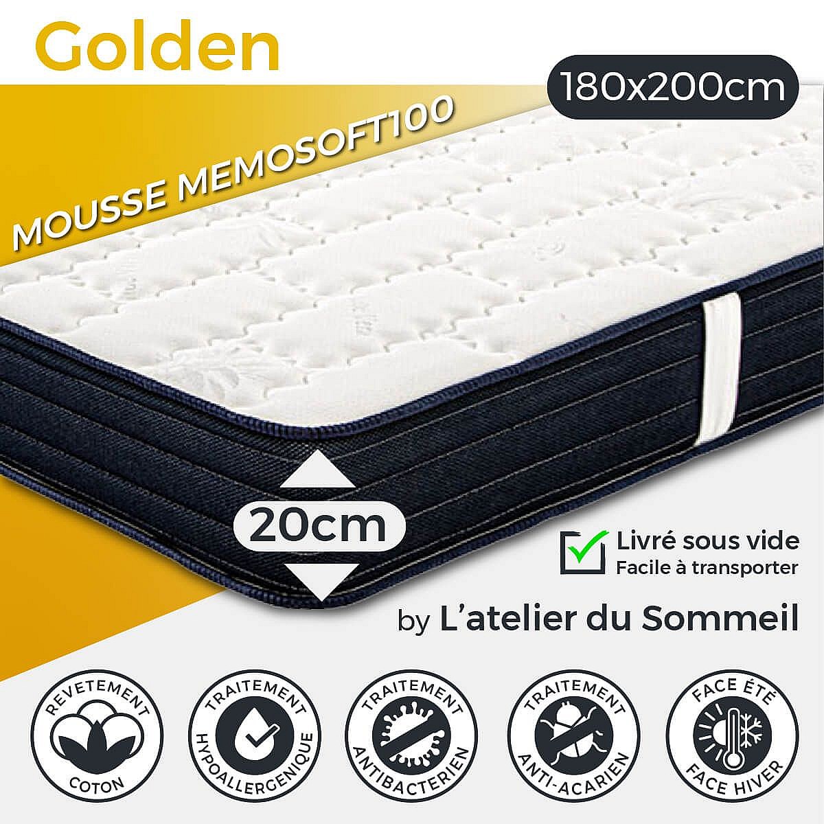 GOLDEN - Matelas 180x200 cm Mousse haute résilience haute adaptabilité Ep.20cm