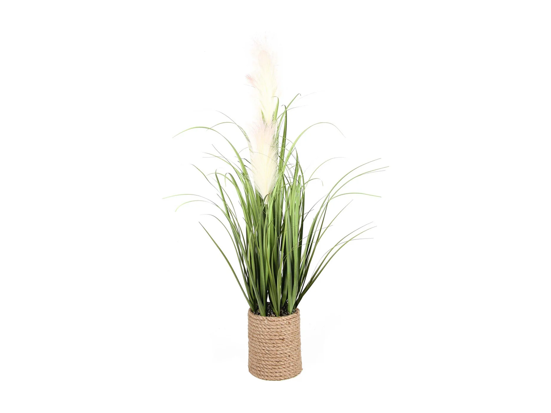 Graminées et plumeaux artificiels pot en corde hauteur 80 cm
