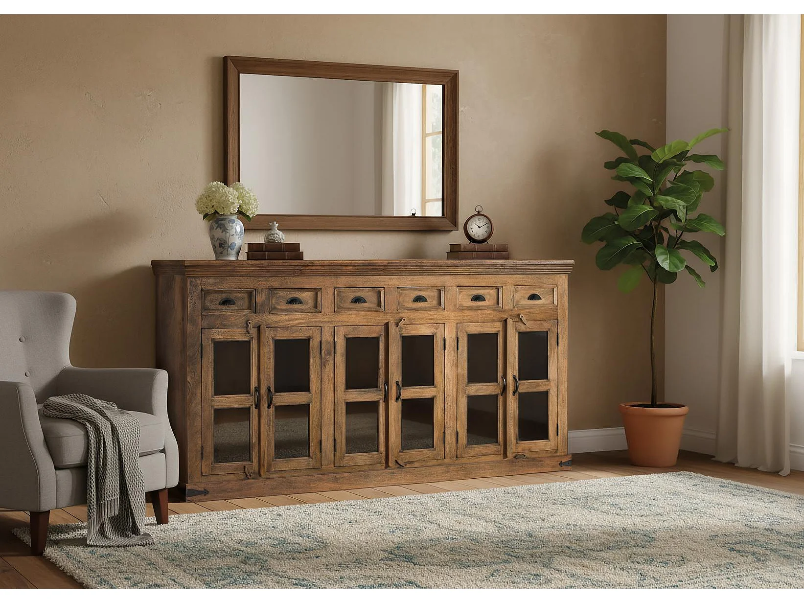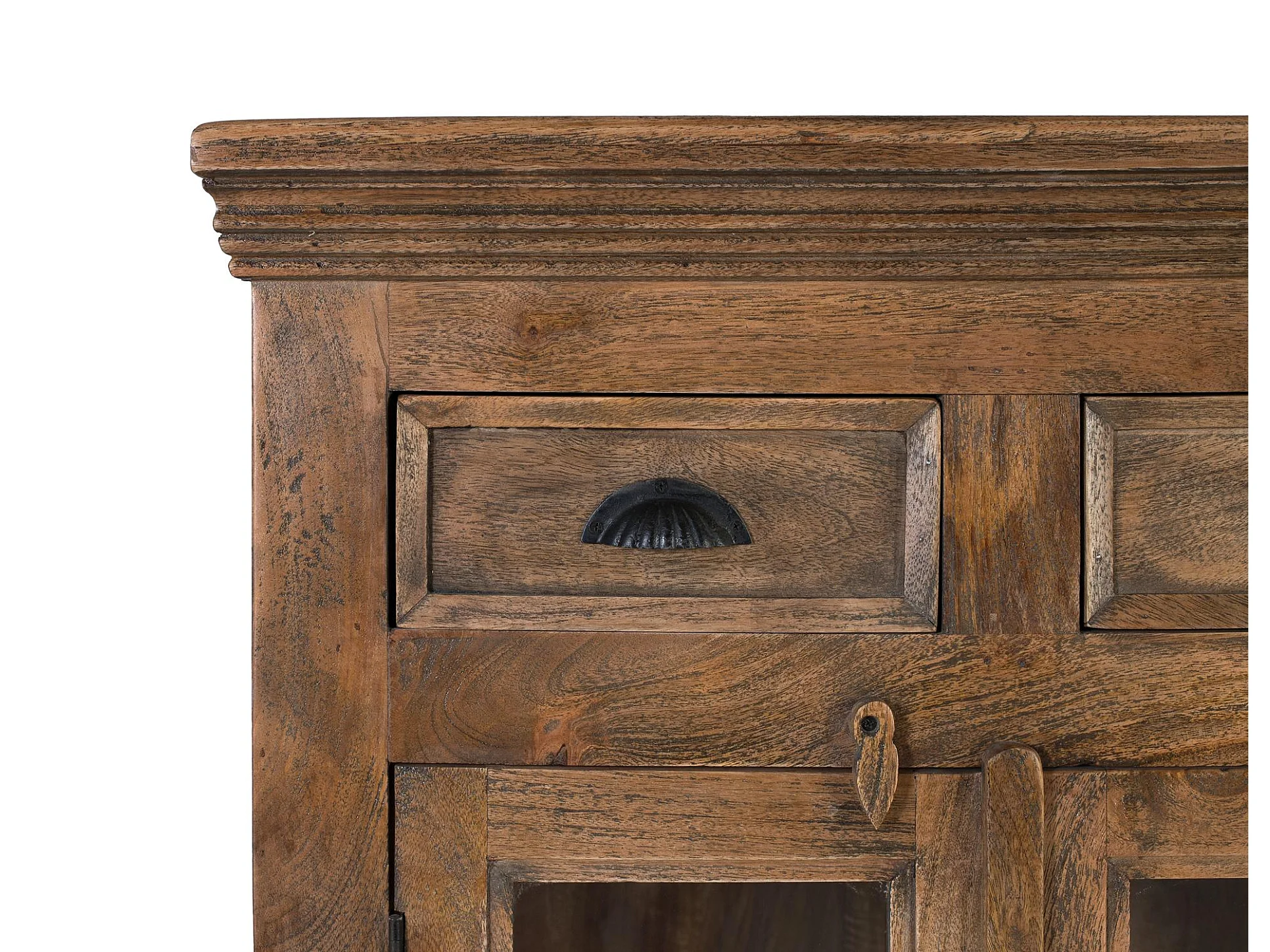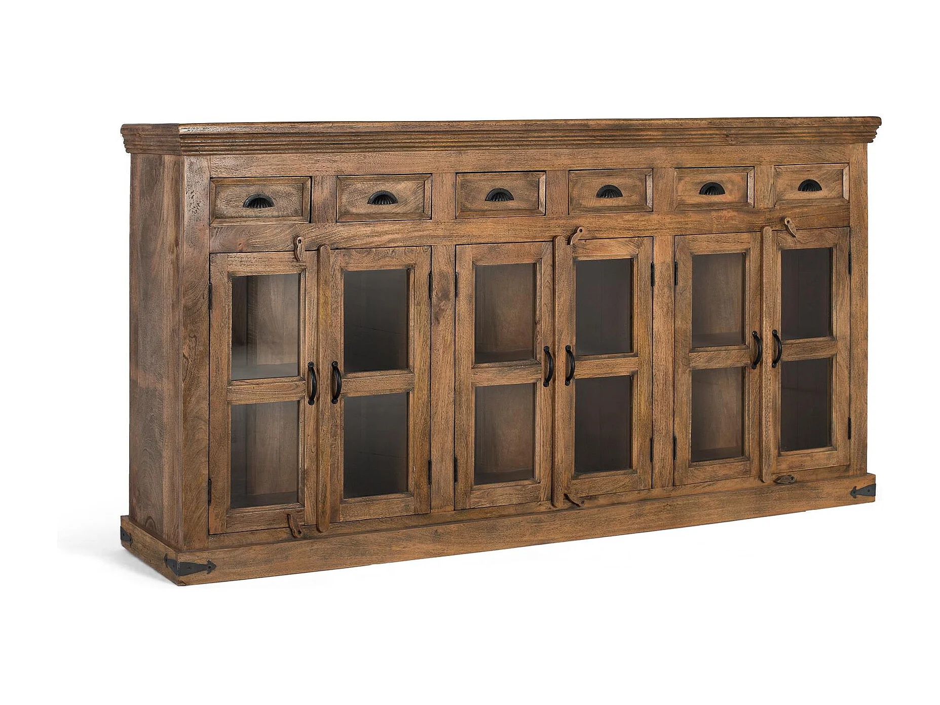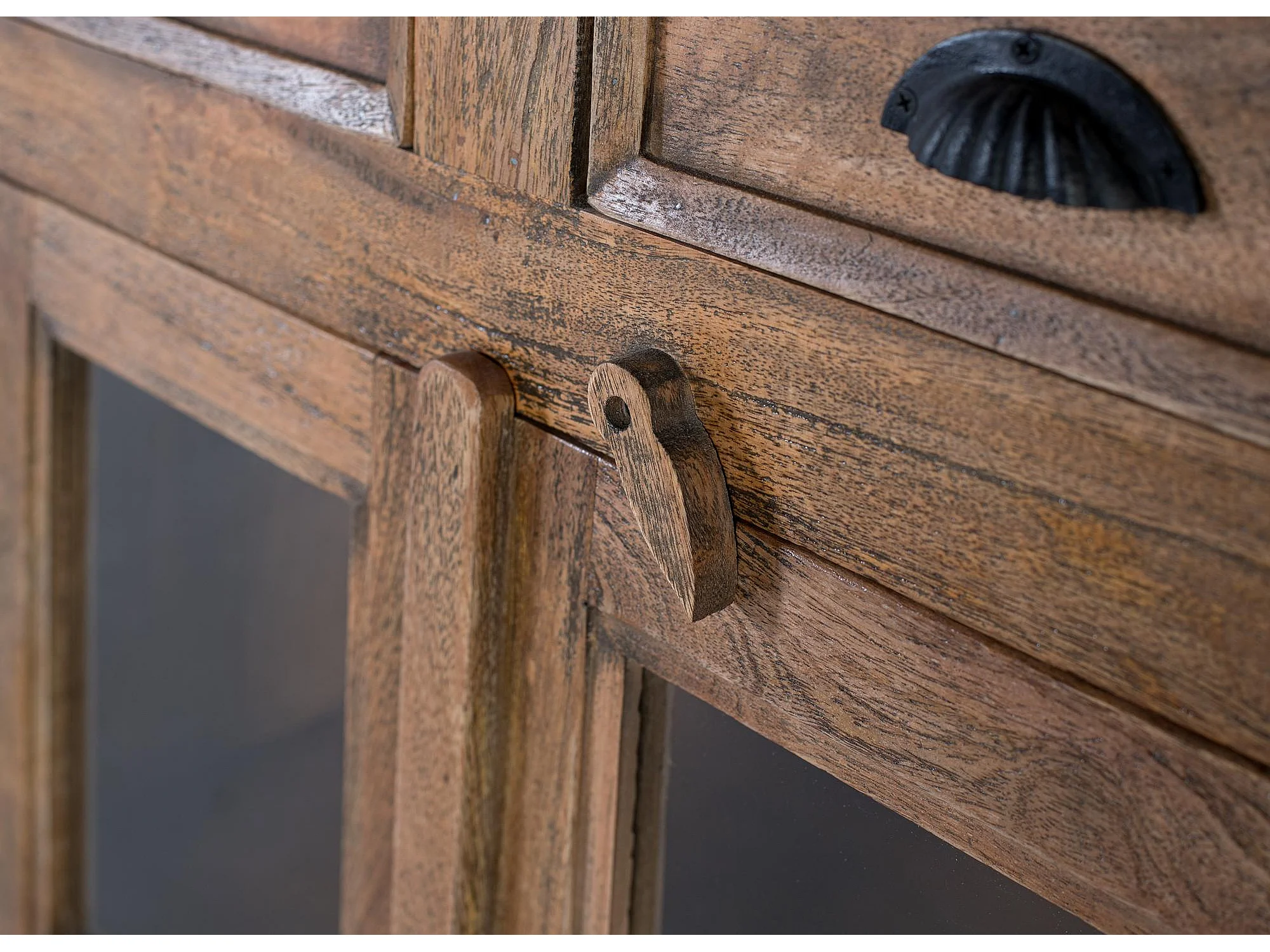 Grand buffet en bois de manguier avec portes sculptées à la main
