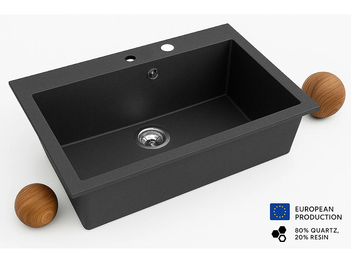 Grand évier ASOIZE NOIR en granit premium - 1 Bac sans égouttoir et vidage inclus