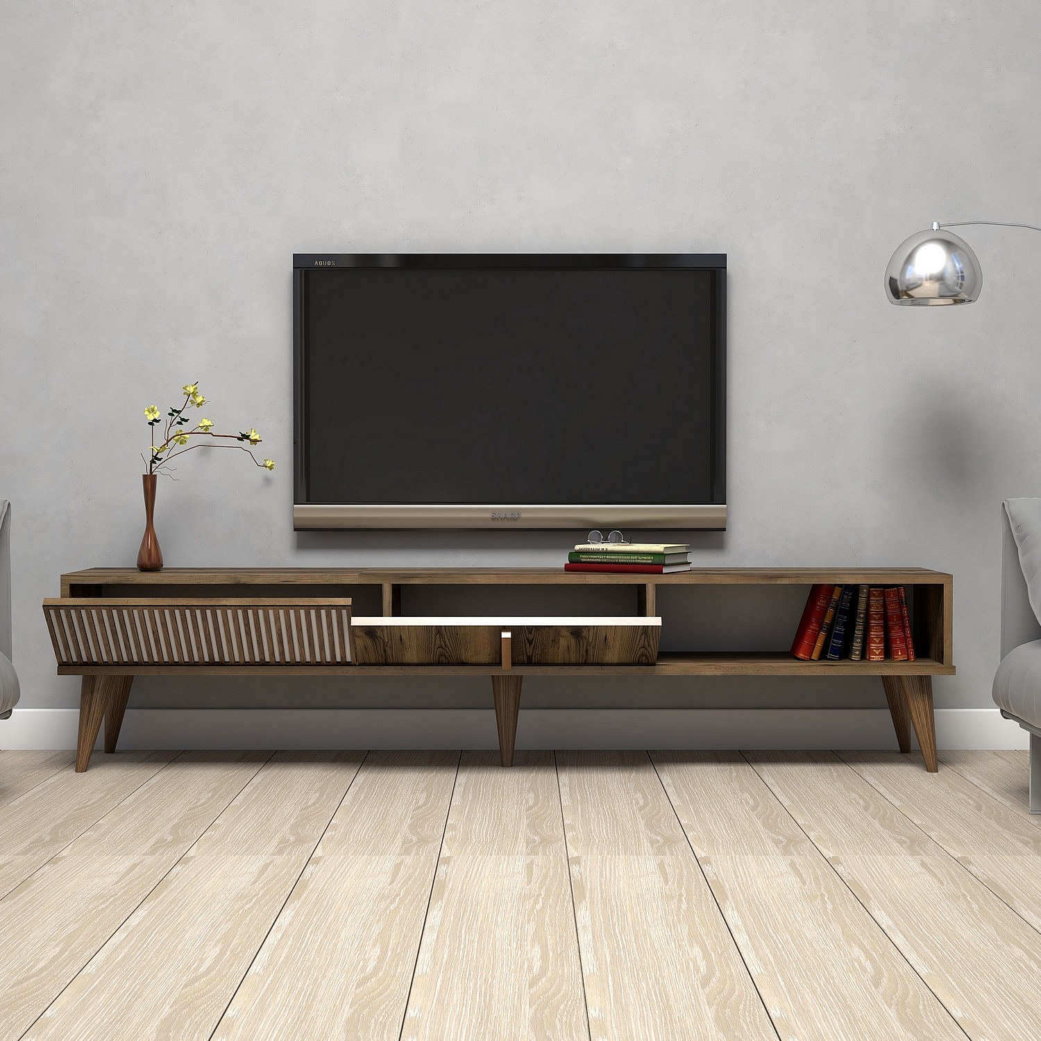 Grand meuble TV en bois noyer 2 portes Roma 180cm