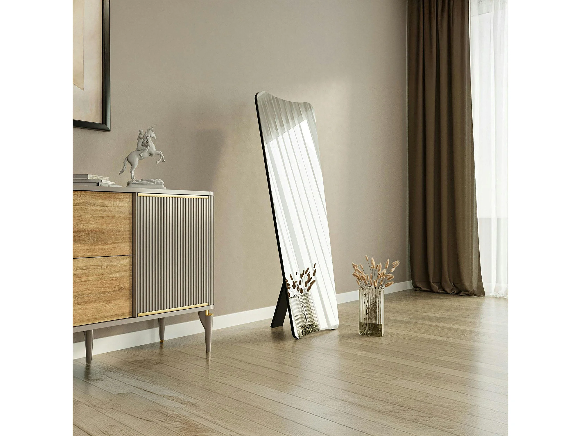 Grand miroir plein pied noir, mural ou à poser noir 150 cm CODY
