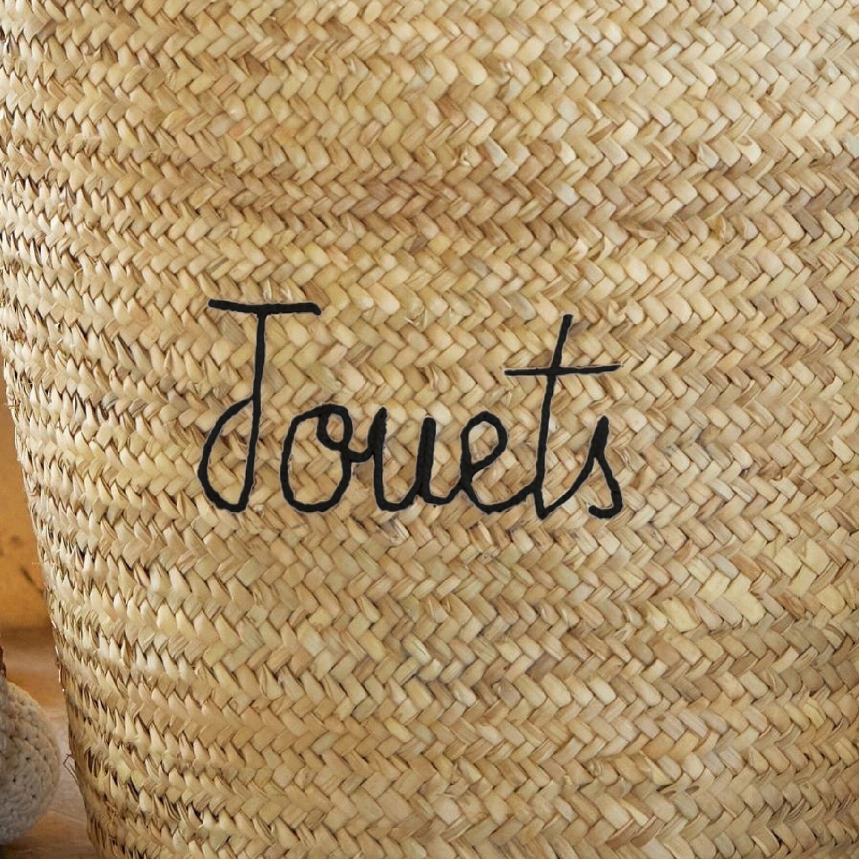 Panier de rangement déco en jonc de mer noir et naturel (lot de 2)