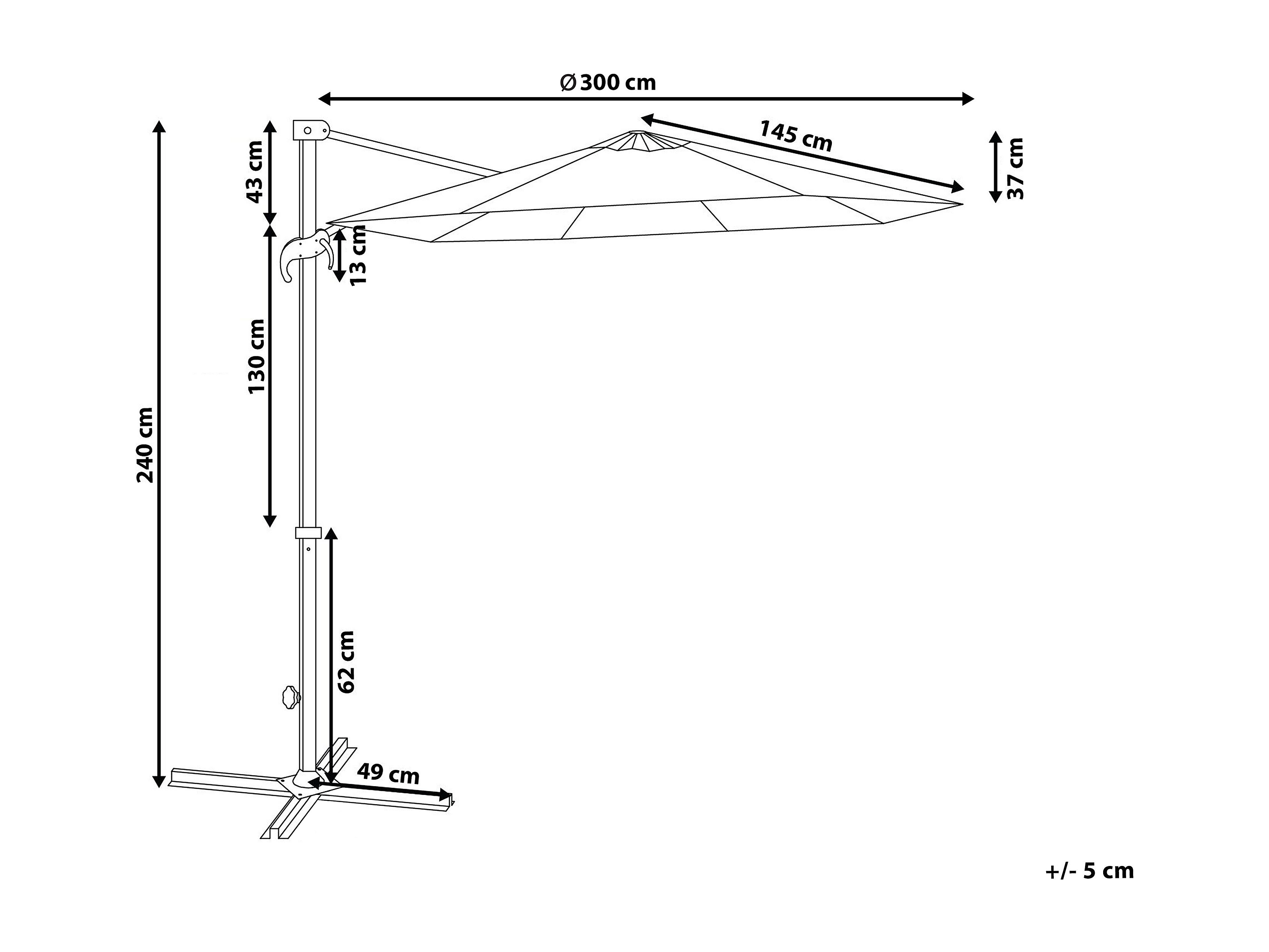 Parasol déporté 300 cm SAVONA Gris foncé Gris
