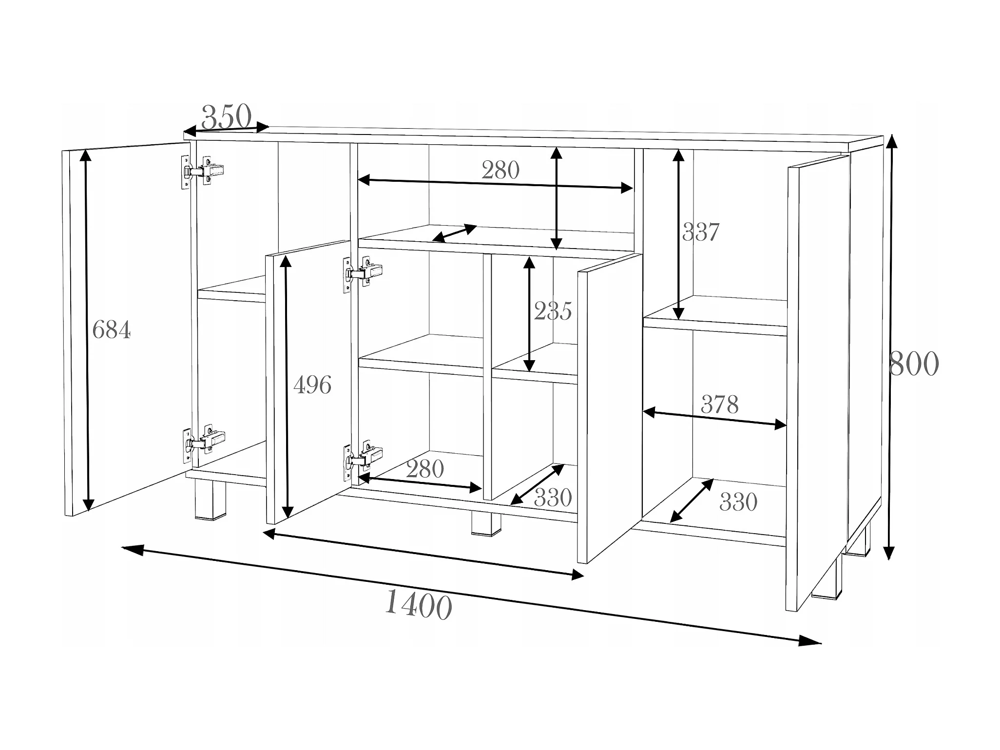 Grande commode 140cm – Noir + Chêne Wotan – Meuble de salon spacieux et moderne- TV loft