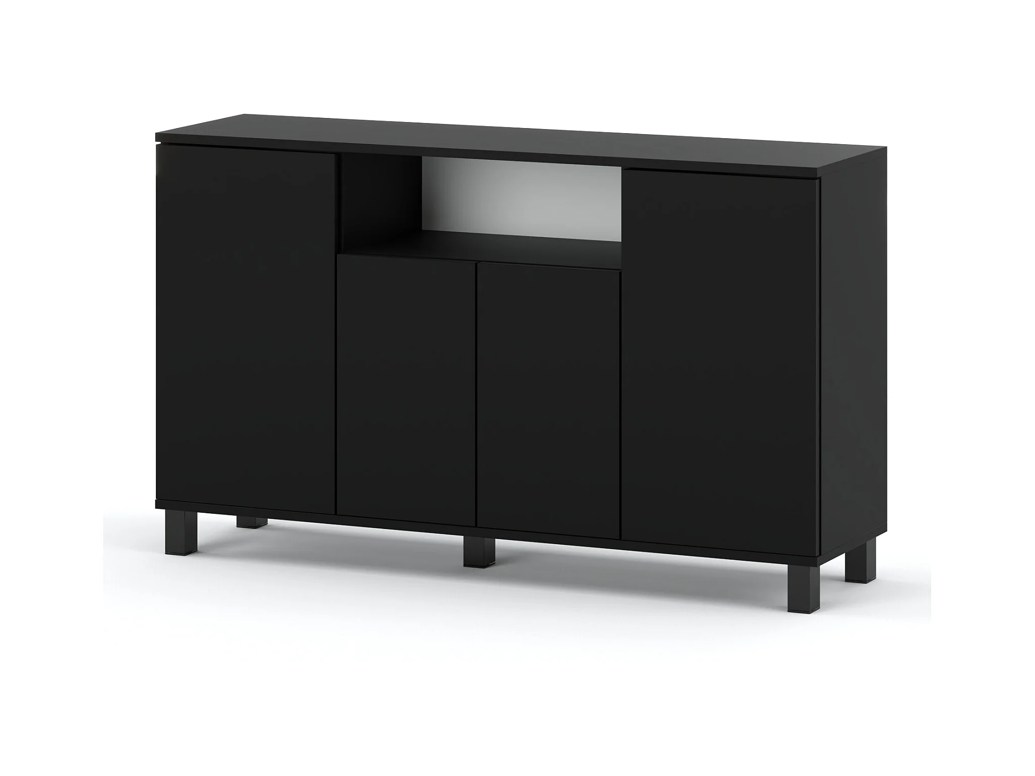 Grande commode 140cm – NOIR – Meuble de salon spacieux et moderne- TV LOFT