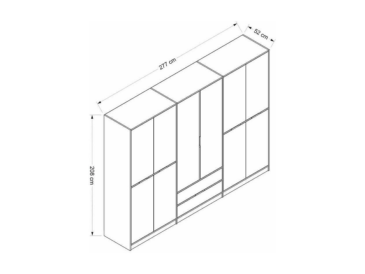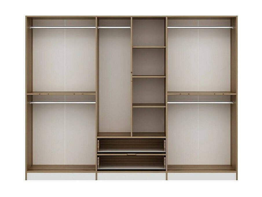 Grande Garde-robe Draic, Meubles de chambre, Penderie de plain-pied, Placard à vêtements, 277x52 h208 cm, Blanc et Or