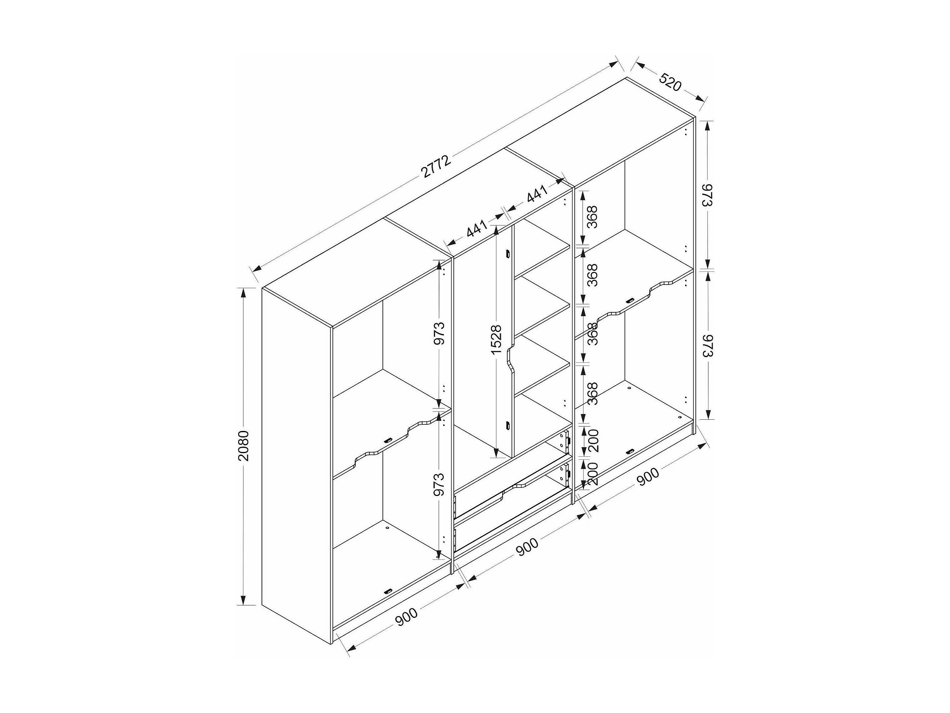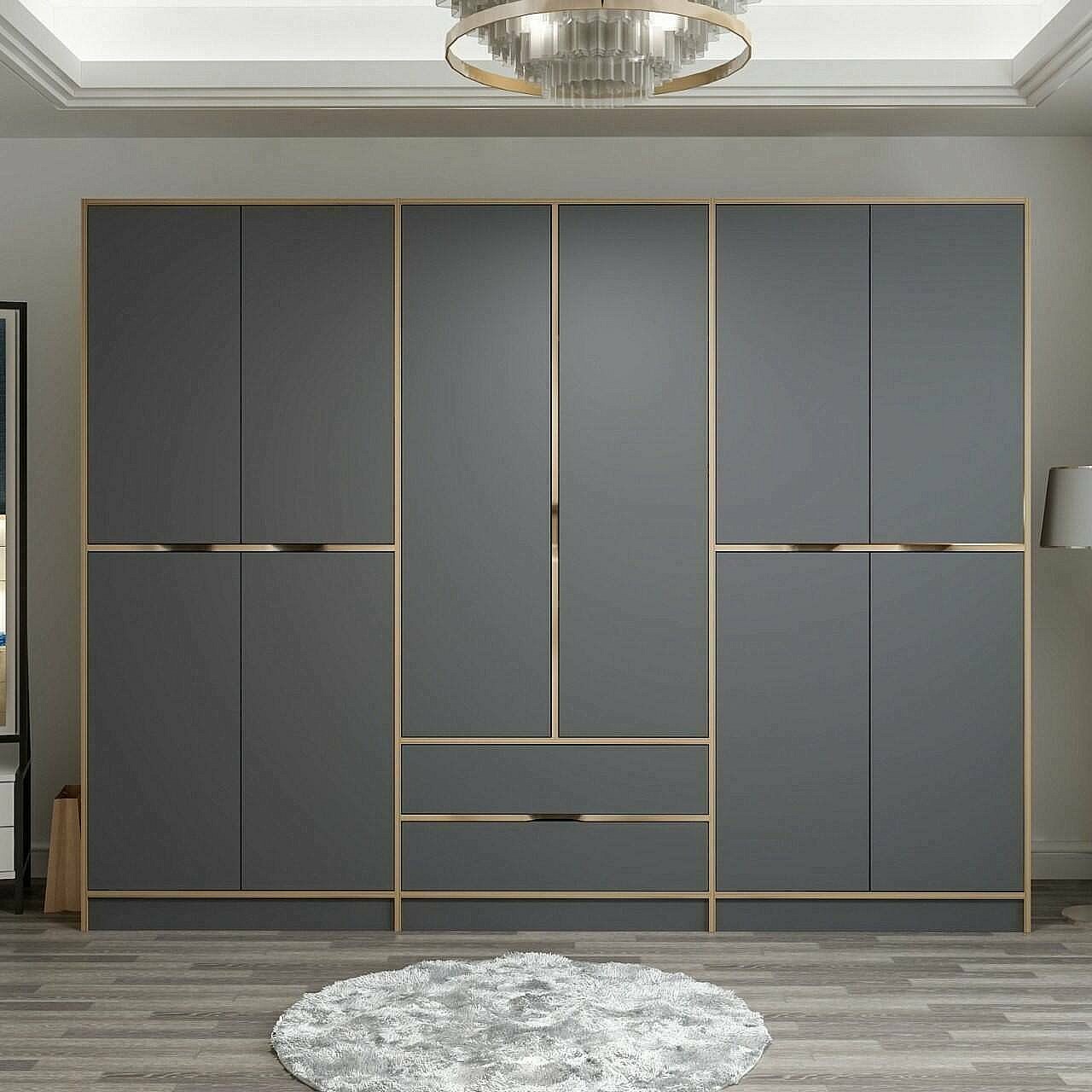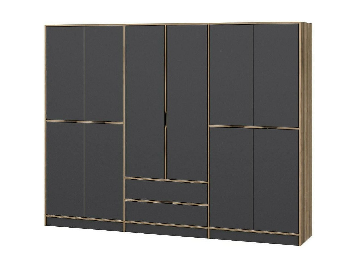 Grande Garde-robe Draic, Meubles de chambre, Penderie de plain-pied, Placard à vêtements, 277x52 h208 cm, Noir et Or