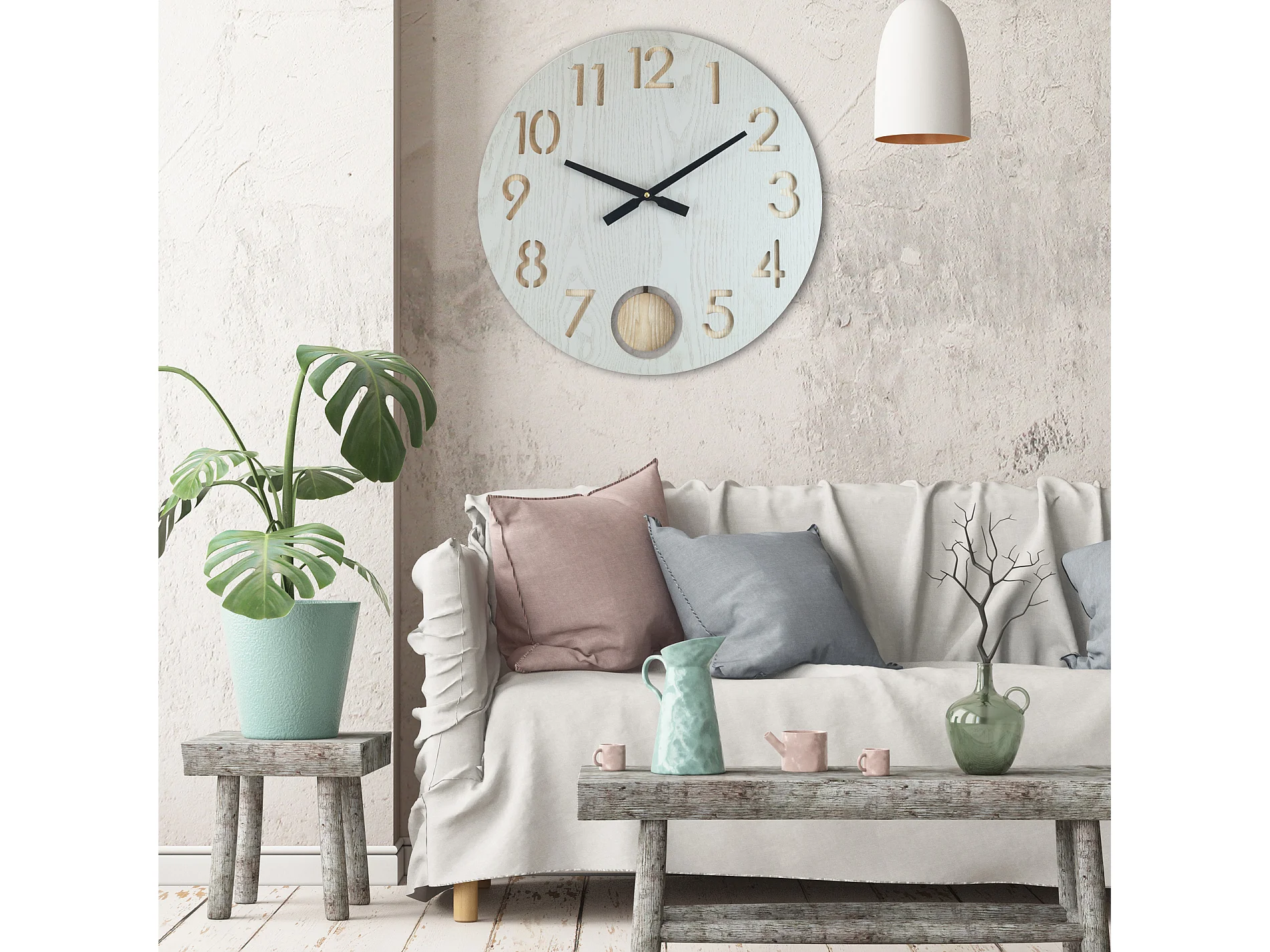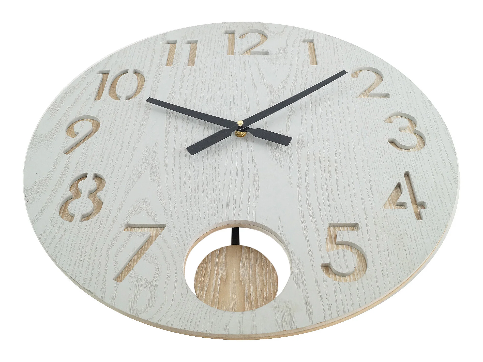 Grande Horloge Murale Particulière En Mdf, Blanc Marron, Salon 50 Cm