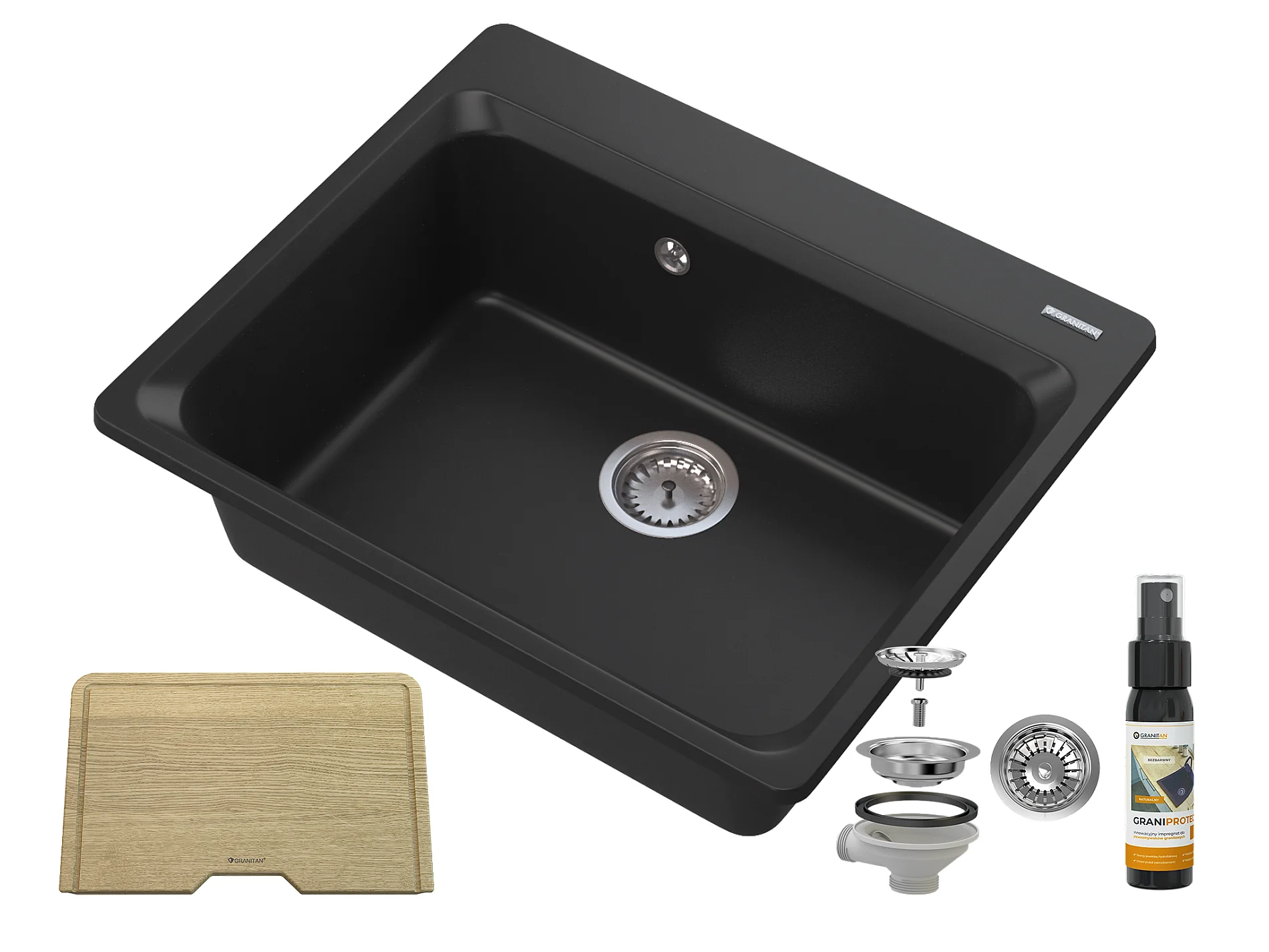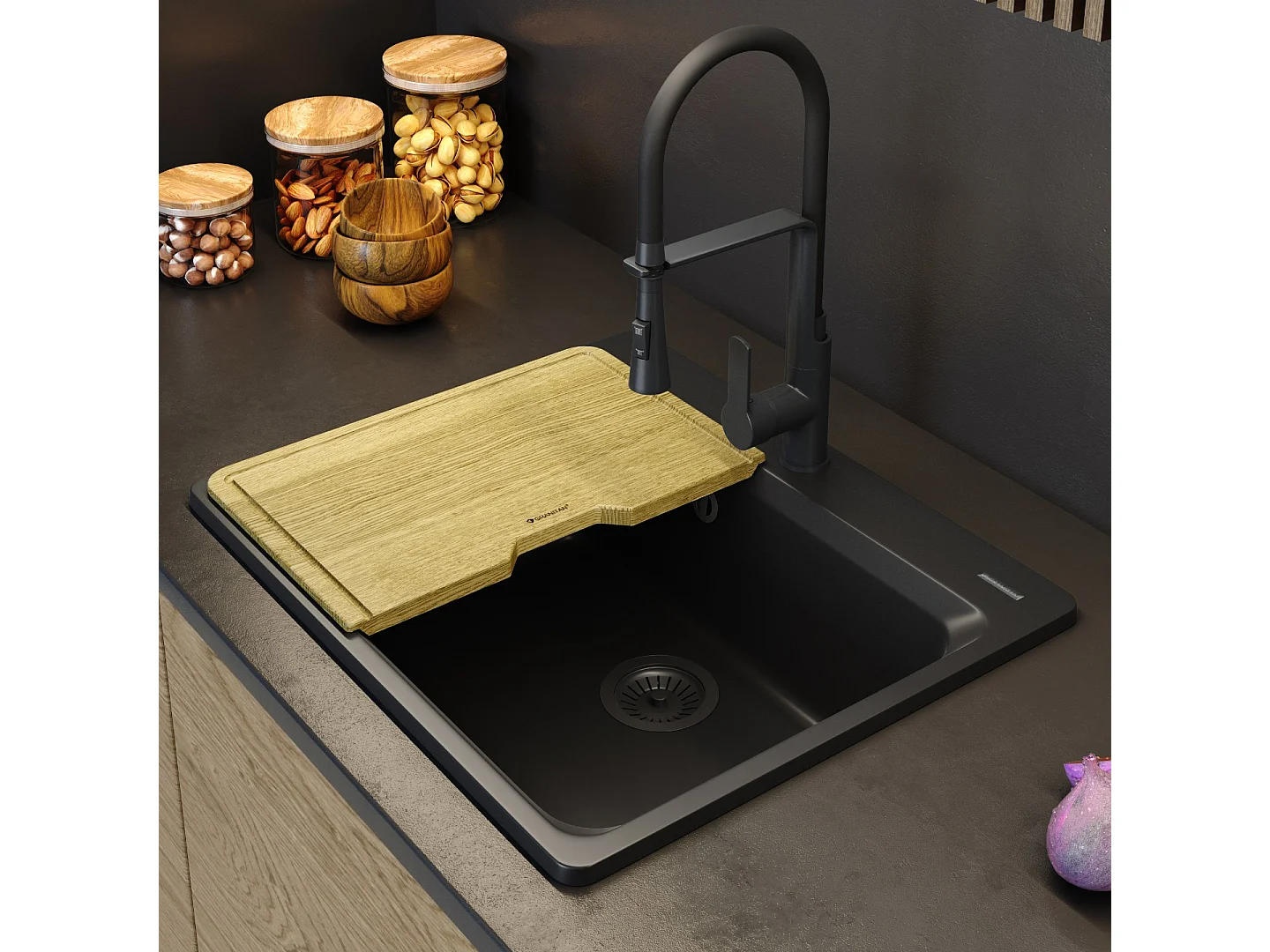 GRANIT ÉVIER 1 COMPARTIMENT PLANCHE CHÊNE IMPRÉGNÉ ZANTE