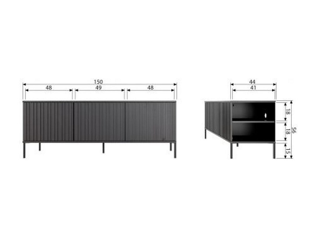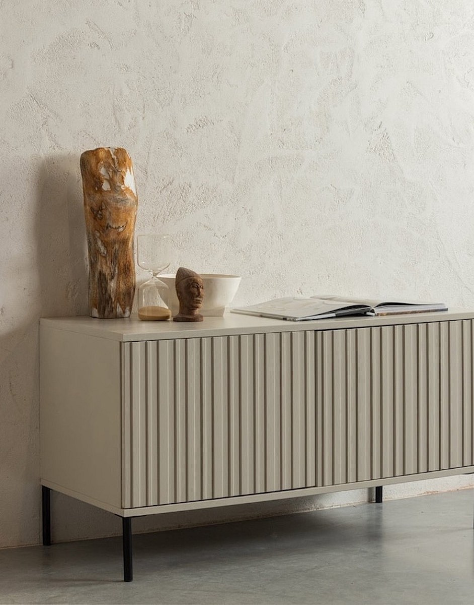 GRAVURE - Meuble TV en bois de pin gris perle L150
