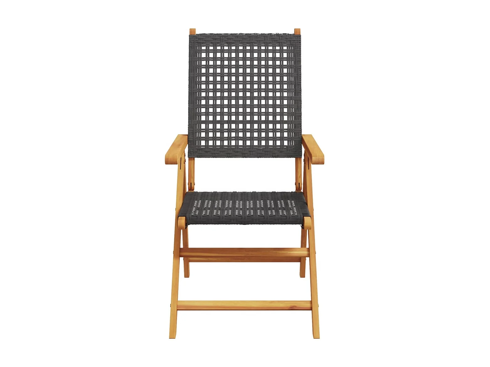 Grilda Ensemble à manger de jardin 7 pcs noir rotin et bois massif