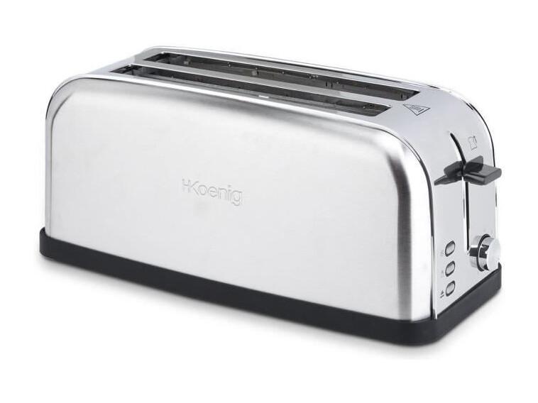 Grille-pain H.KoeNIG TOAS28 - 2 fentes - 3 fonctions - Thermostat réglable 7 niveaux - Acier inoxydable - Gris