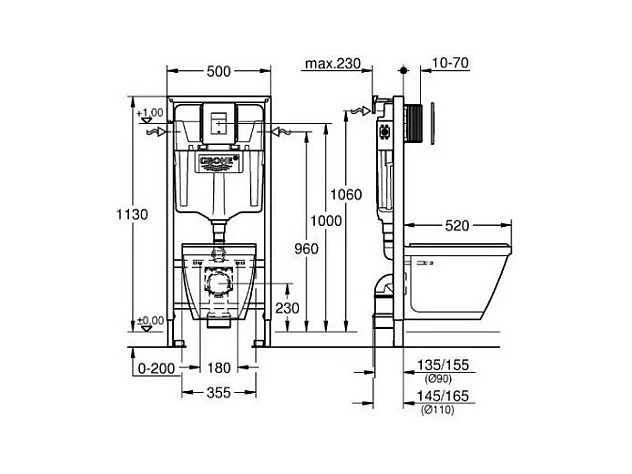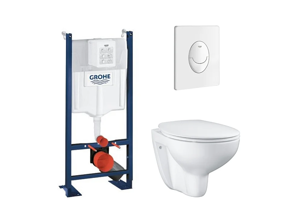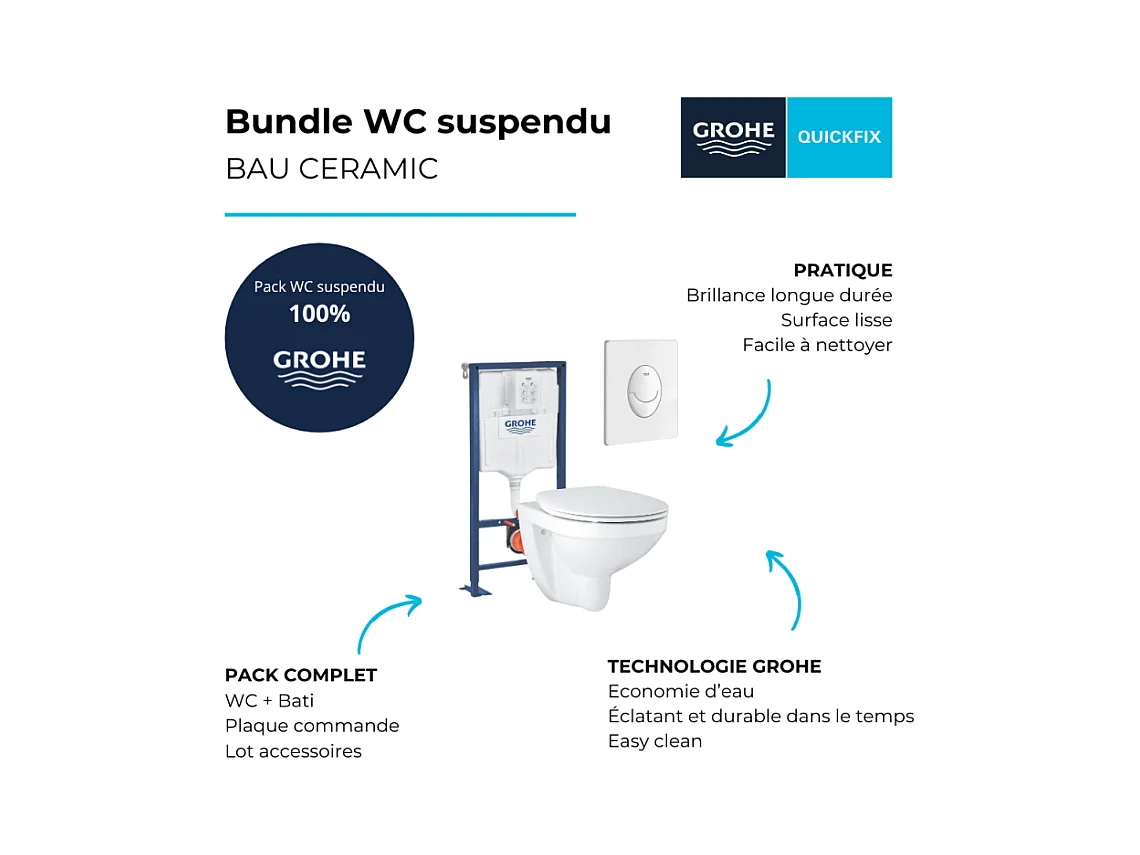 Pack WC suspendu sans bride GROHE Bau Cerami avec bâti support Rapid SL Project et plaque de commande Start blanc