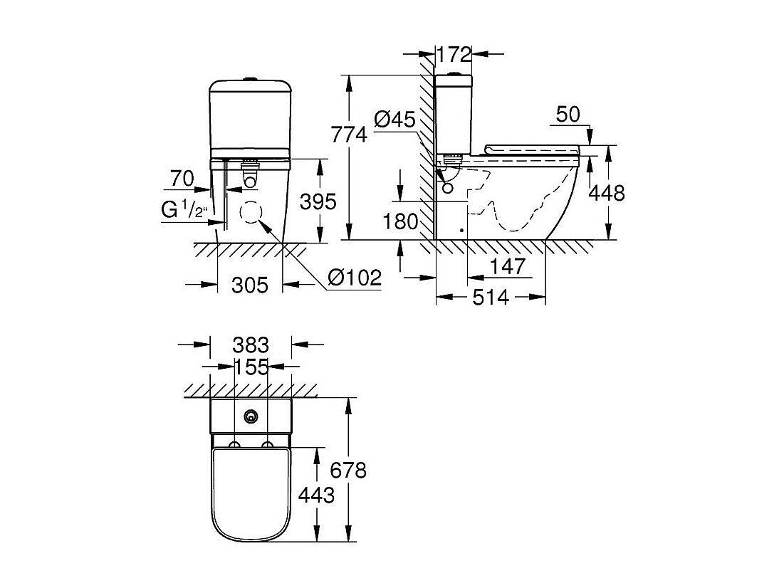 GROHE WC à poser sans bride Euro Ceramic + abattant et nettoyant