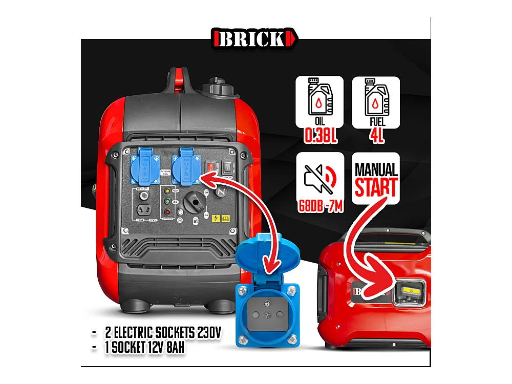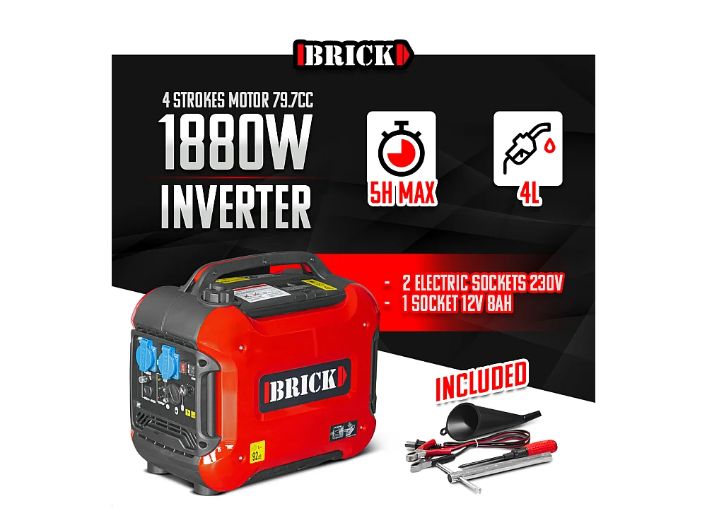 Groupe électrogène inverter silencieux max 1880W - 2 prises - Brick