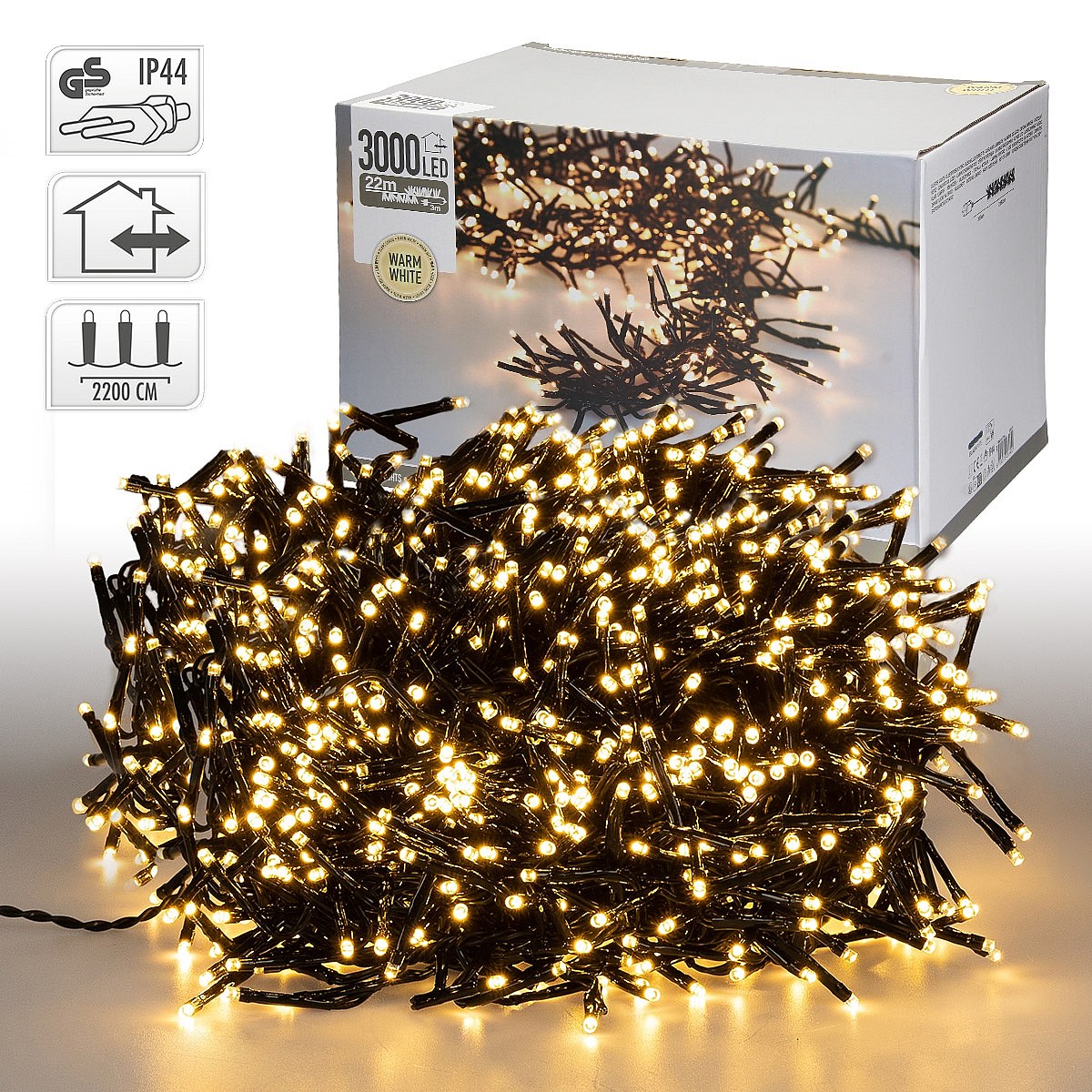 Guirlande lumineuse 3000 LEDs cluster éclairage blanc chaud intérieur/extérieur