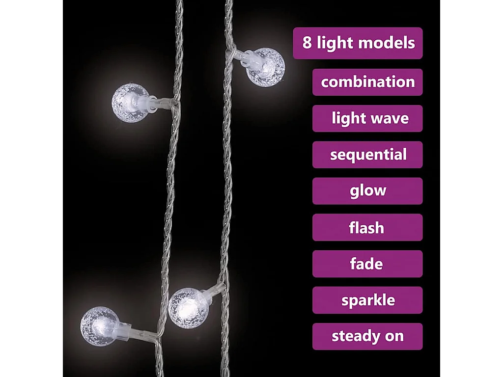 Guirlande lumineuse Globe 20 m 200 LED Blanc froid 8 fonctions