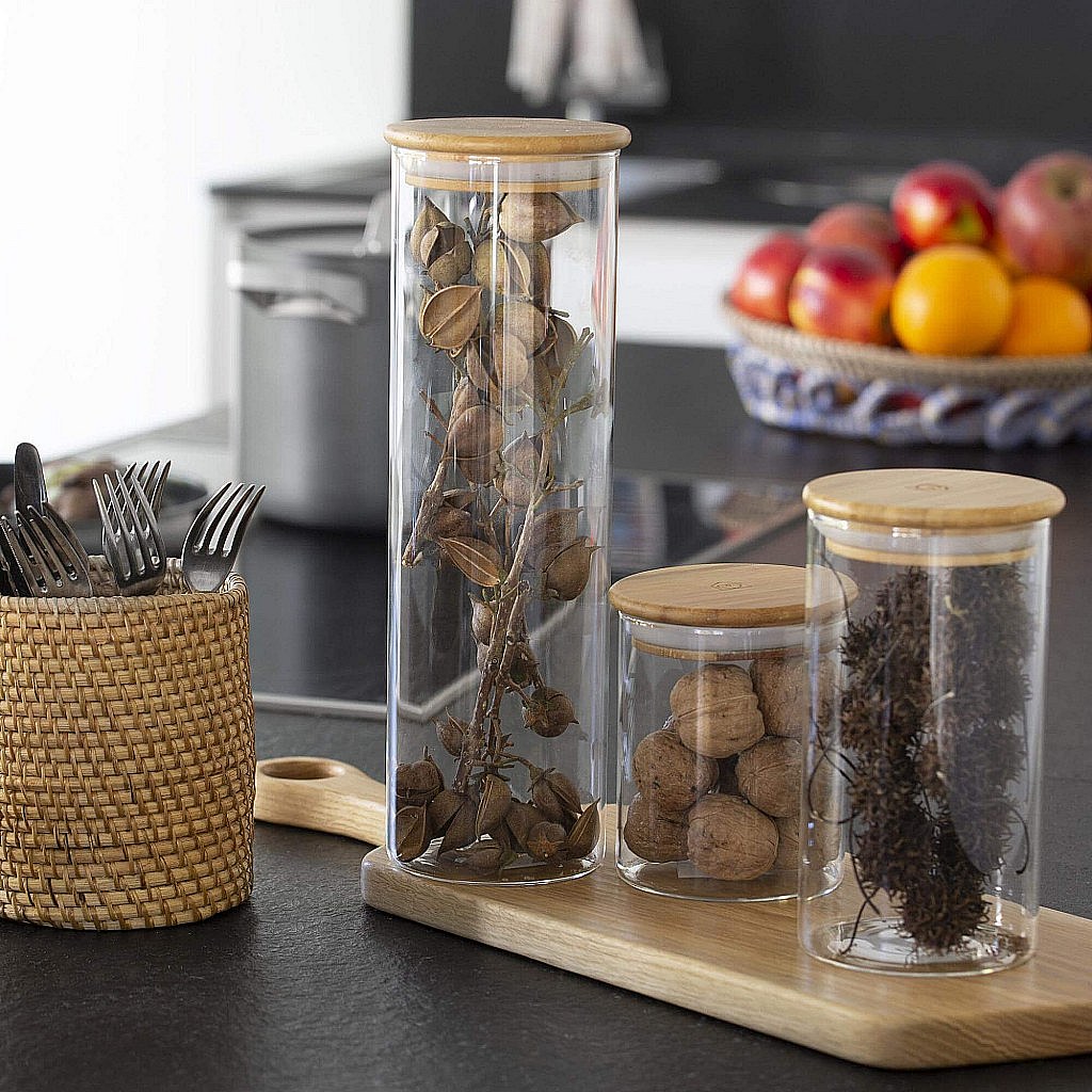 Habitat - Bocal en verre et bambou - 10 x 8 cm (Lot de 12) - Ferm