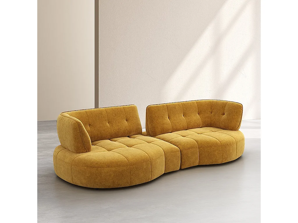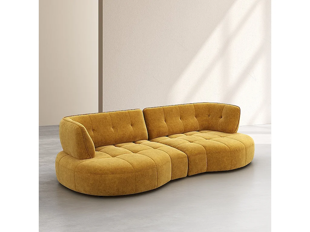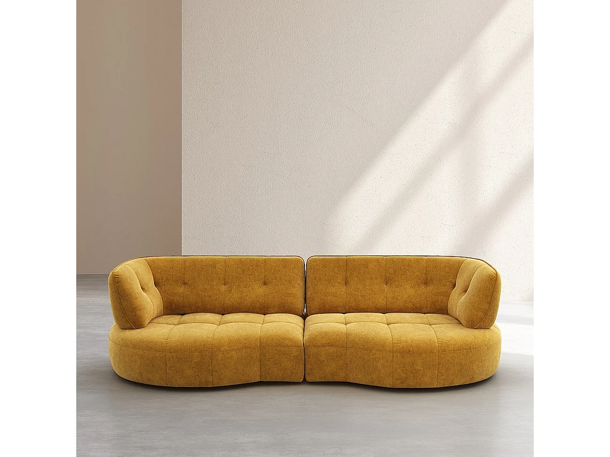 Habitat - Canapé 4 places capitonné en tissu avec dossier avance-recule - Miel - Alizee