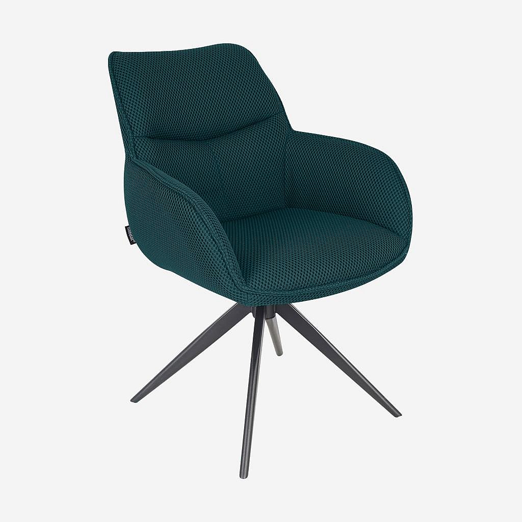 Habitat - Chaise pivotante en tissu 3D et métal noir avec accoudoirs - Bleu canard - Arzana