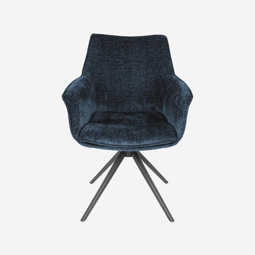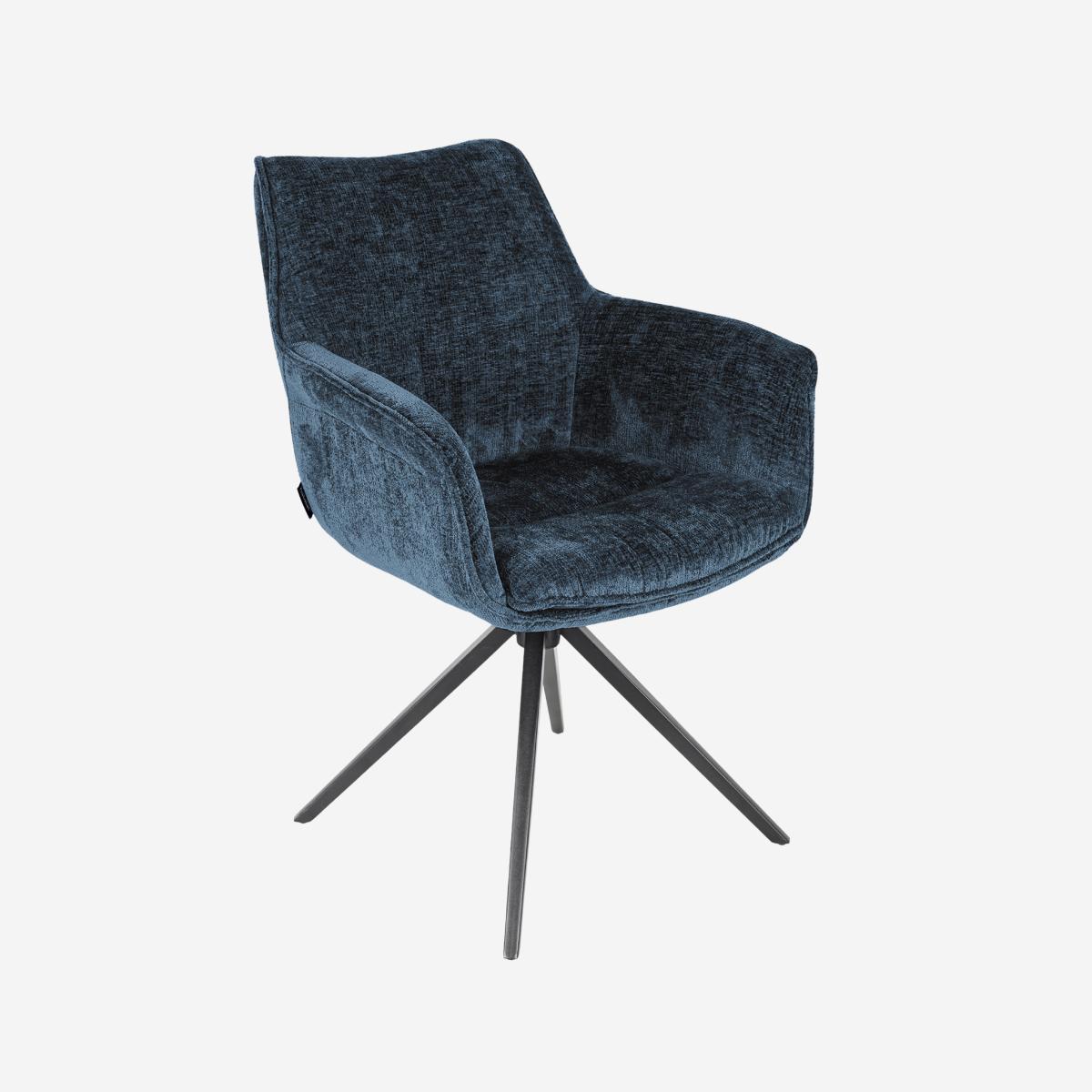 Habitat - Chaise pivotante en tissu chenille et métal noir avec accoudoirs - Bleu nuit - Mogila