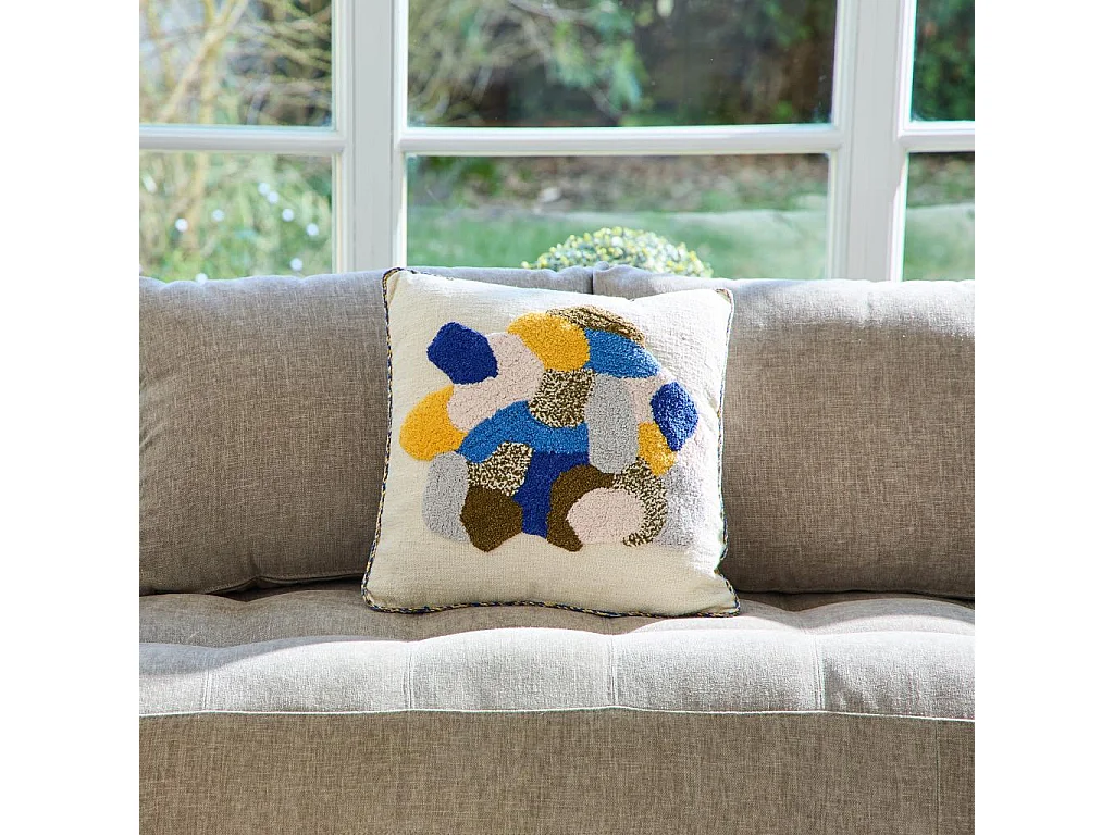 Habitat - Coussin tufté en coton - 45 x 45 cm - Vert kaki et bleu - Design by Floriane Jacques - Aubin