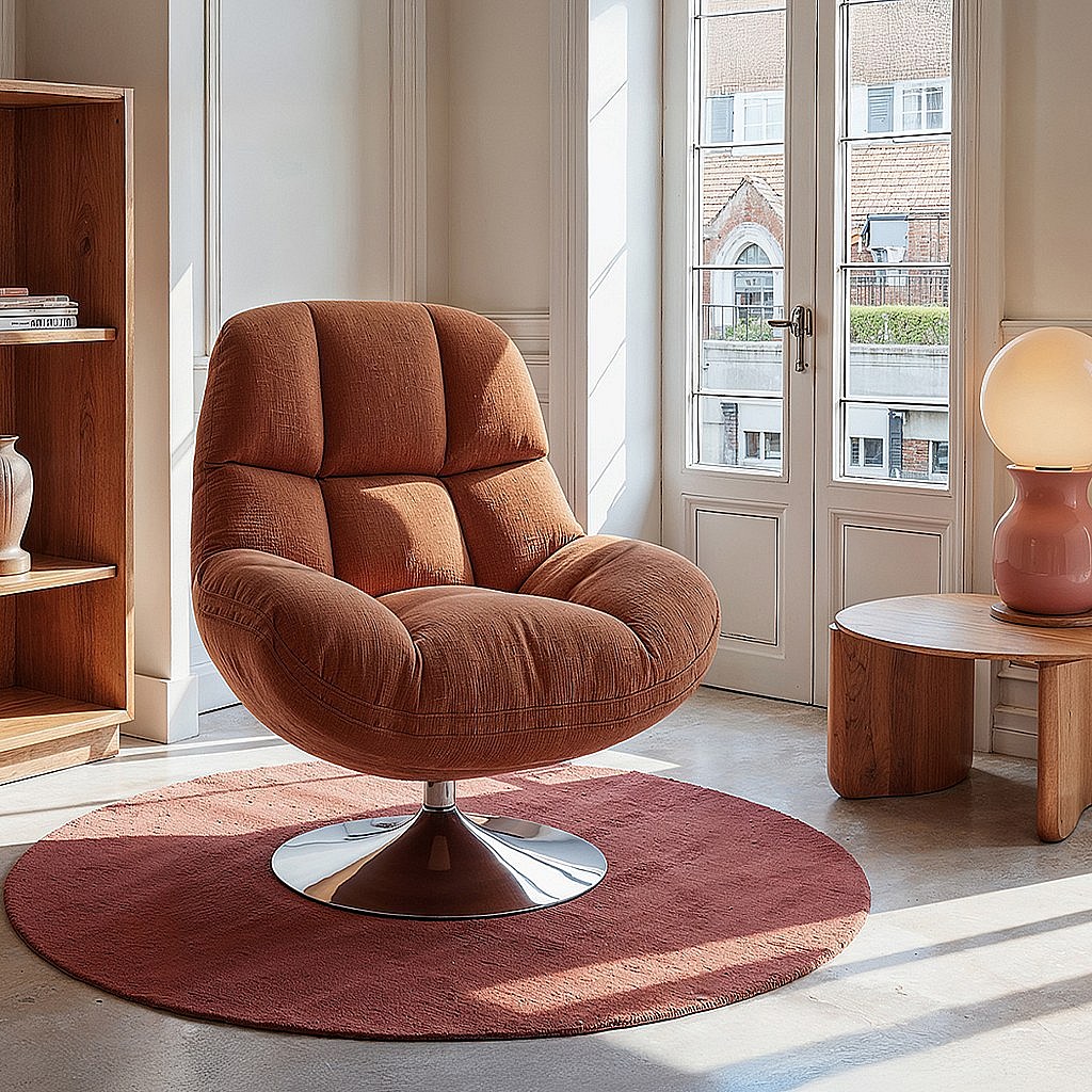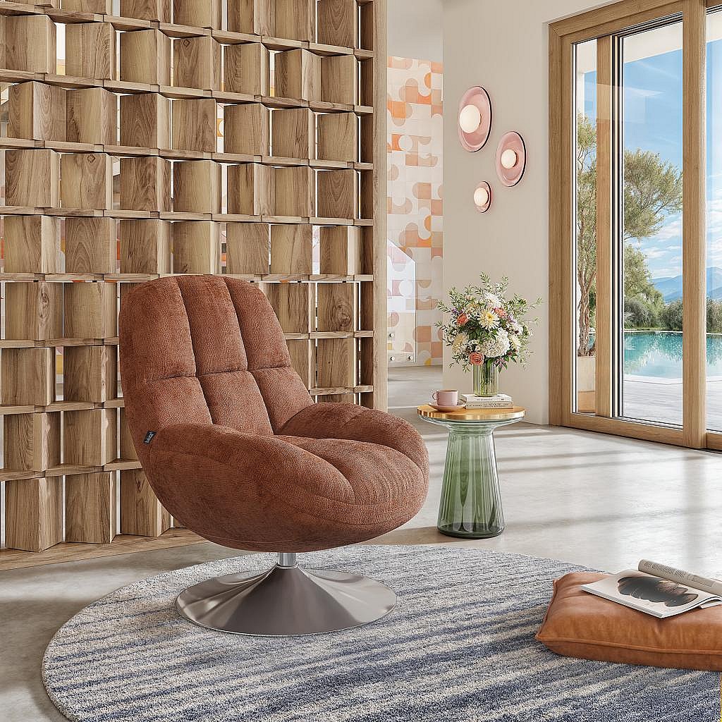 Habitat - Fauteuil pivotant en tissu chenille et métal chromé - Terracotta - Mogliano