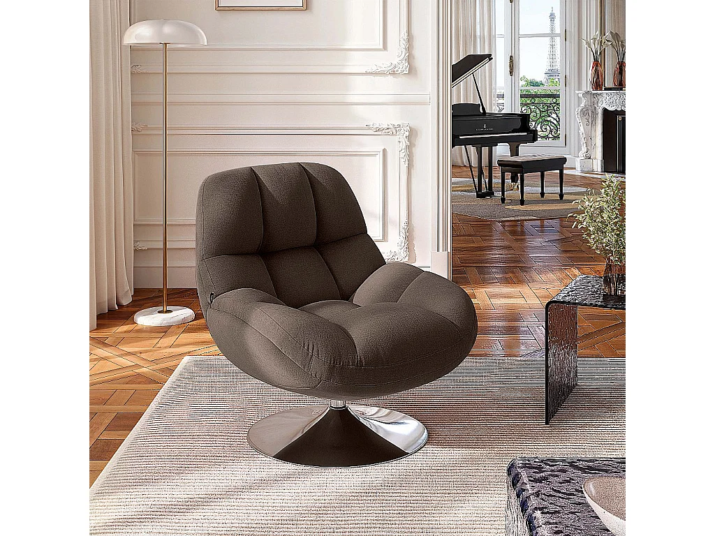 Habitat - Fauteuil pivotant en tissu et métal chromé - Taupe - Mogliano