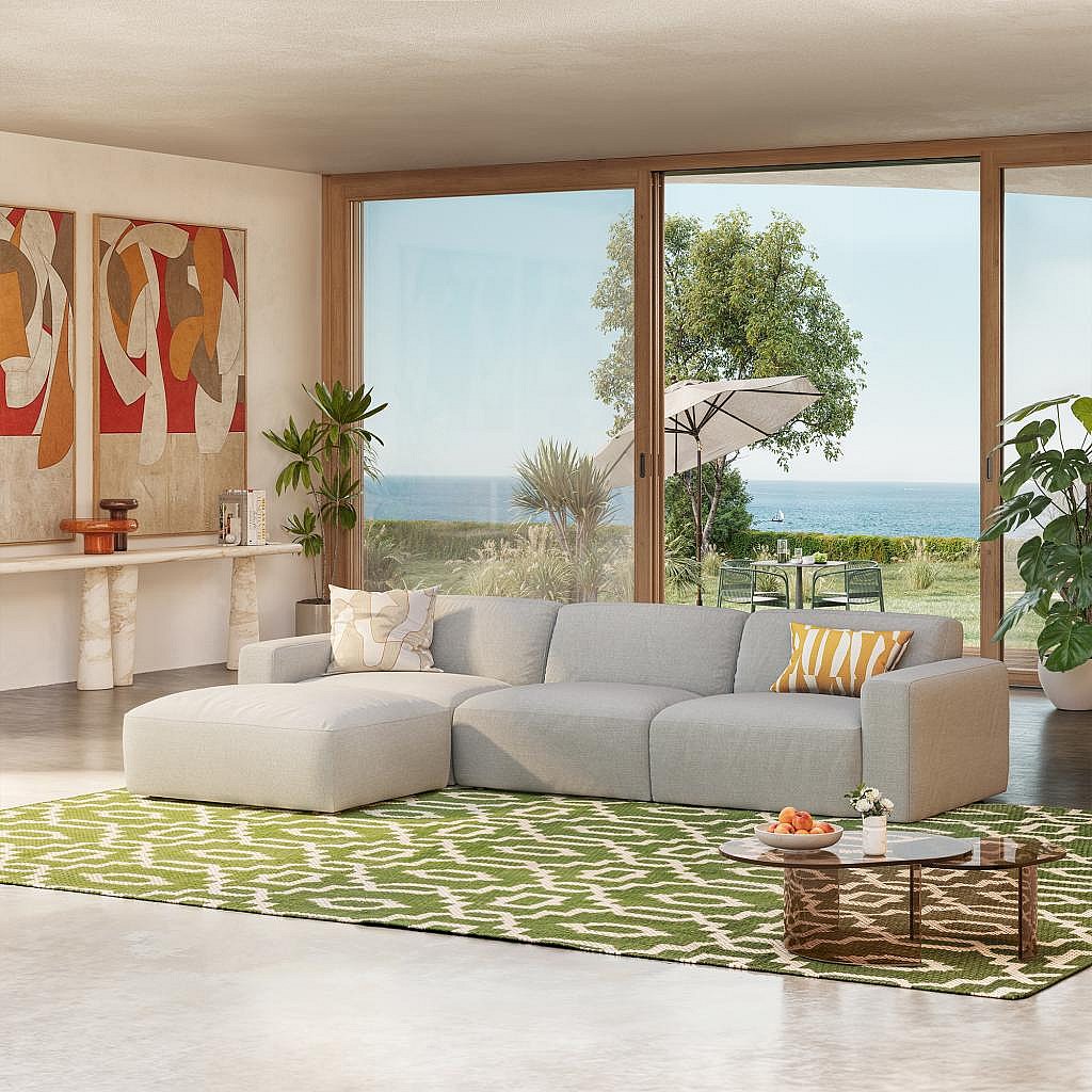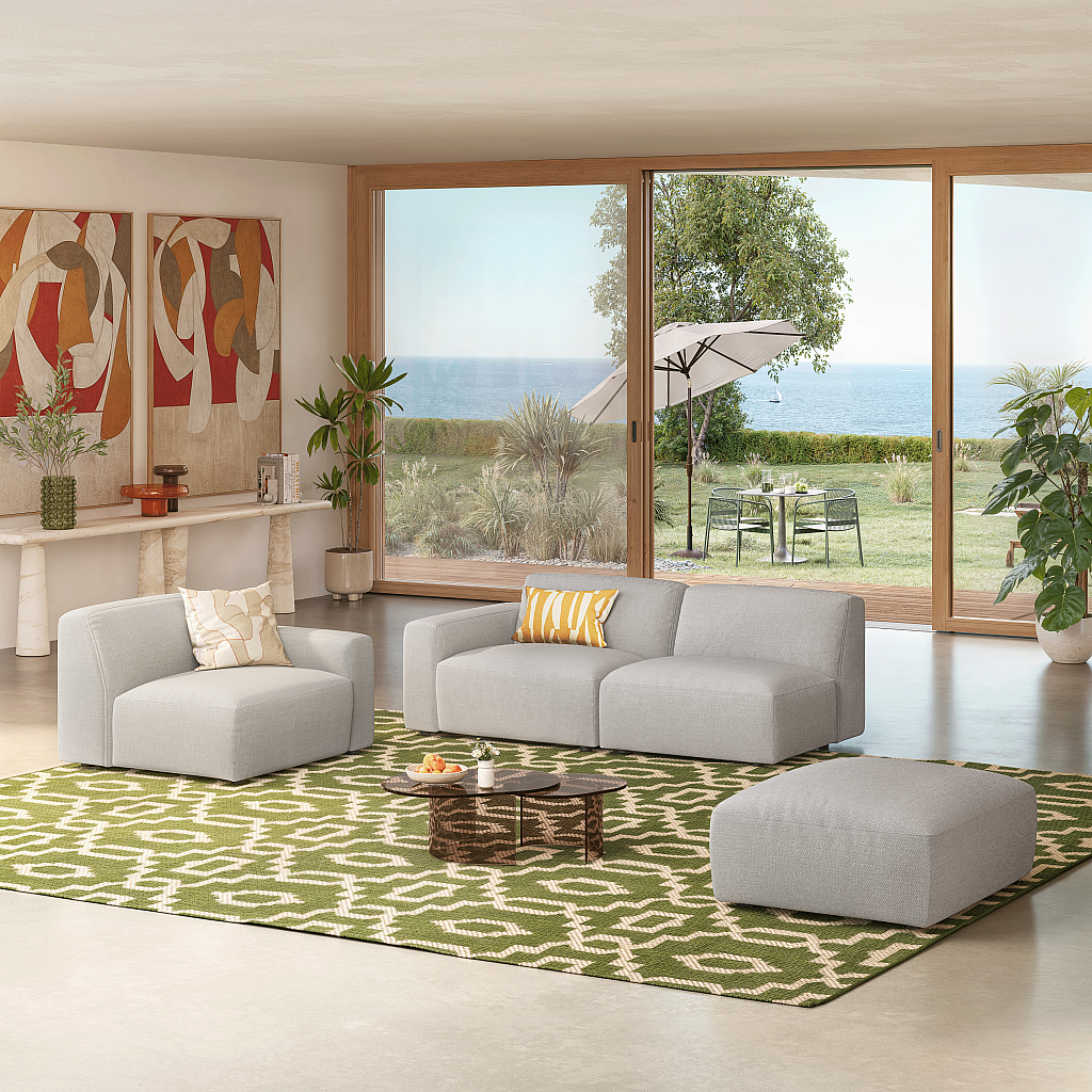 Habitat - Grand canapé d'angle modulable en tissu - Gris perle - Cremi