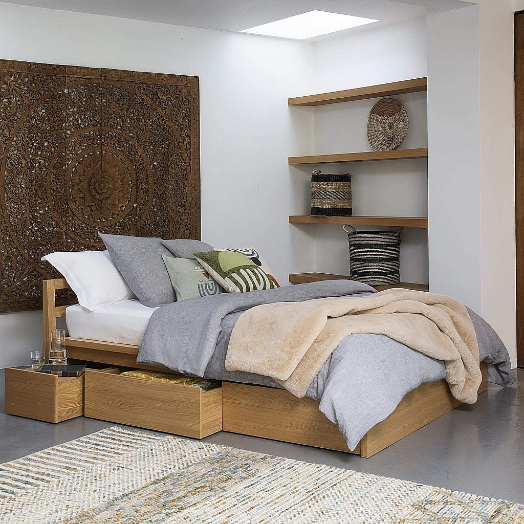 Habitat - Lit 160 x 200 cm avec rangements en chêne - Naturel - Adams II