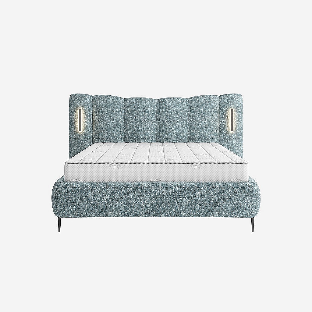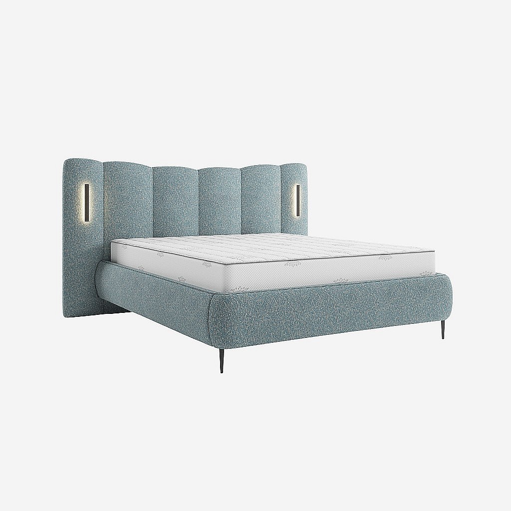 Habitat - Lit coffre 160 x 200 cm en tissu texturé avec LED intégrées - Bleu chiné - Siderno
