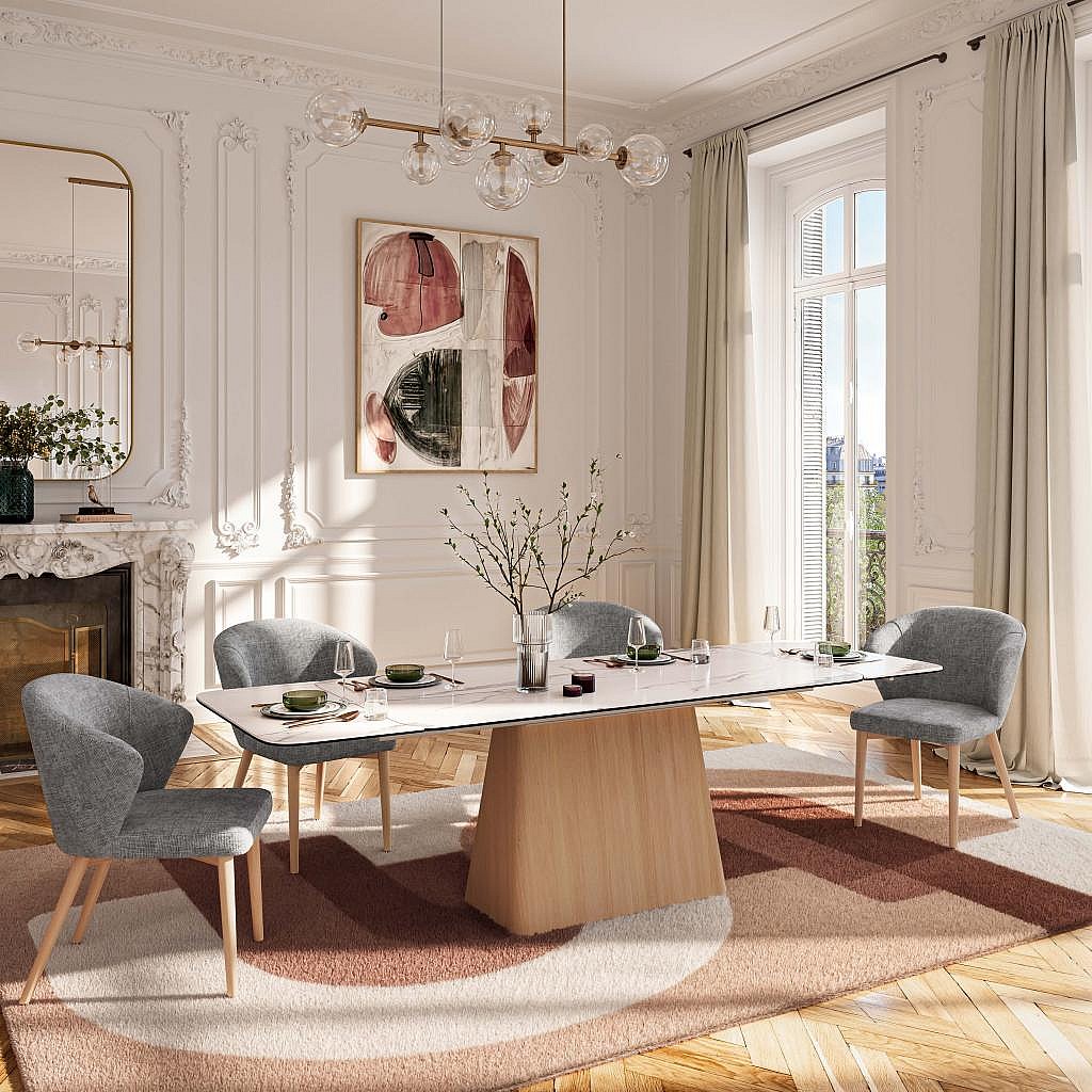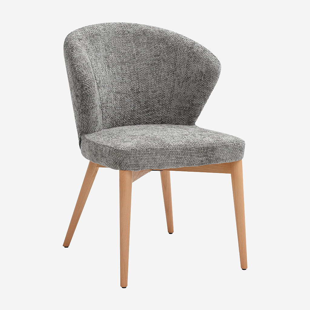 Habitat - Lot de 2 chaises en tissu chenille et bois massif couleur chêne - Gris argent - Luris