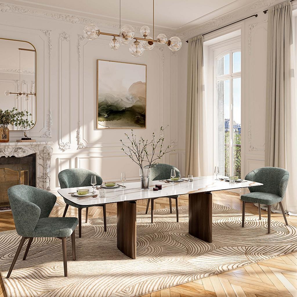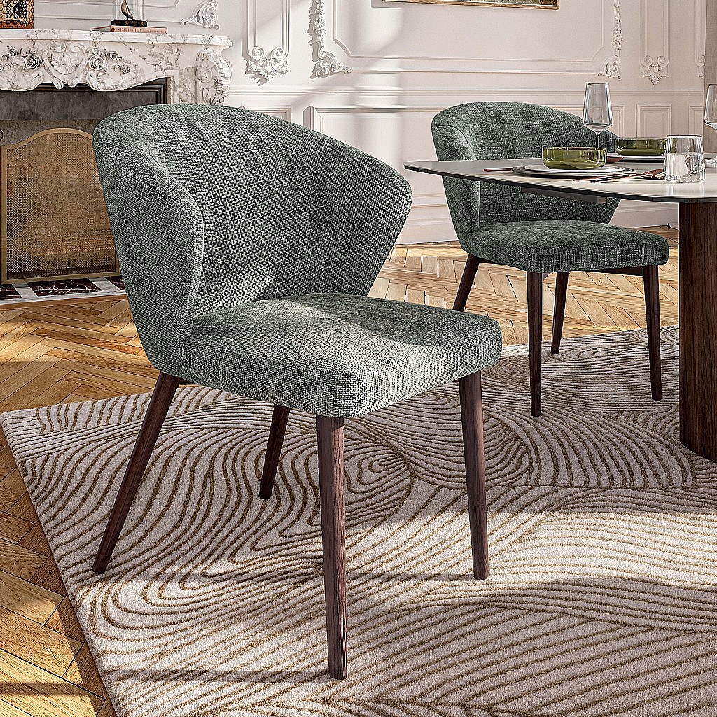 Habitat - Lot de 2 chaises en tissu chenille et bois massif couleur noyer - Vert sapin - Luris